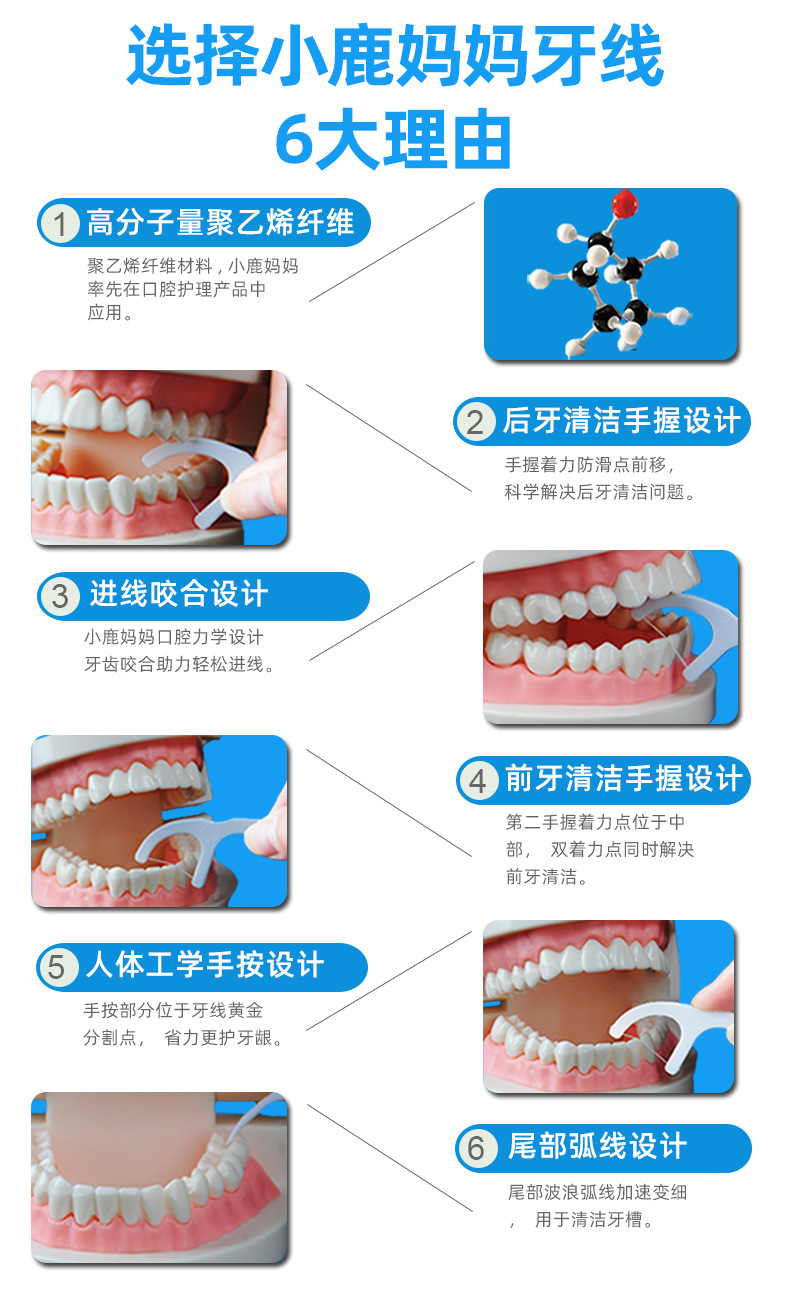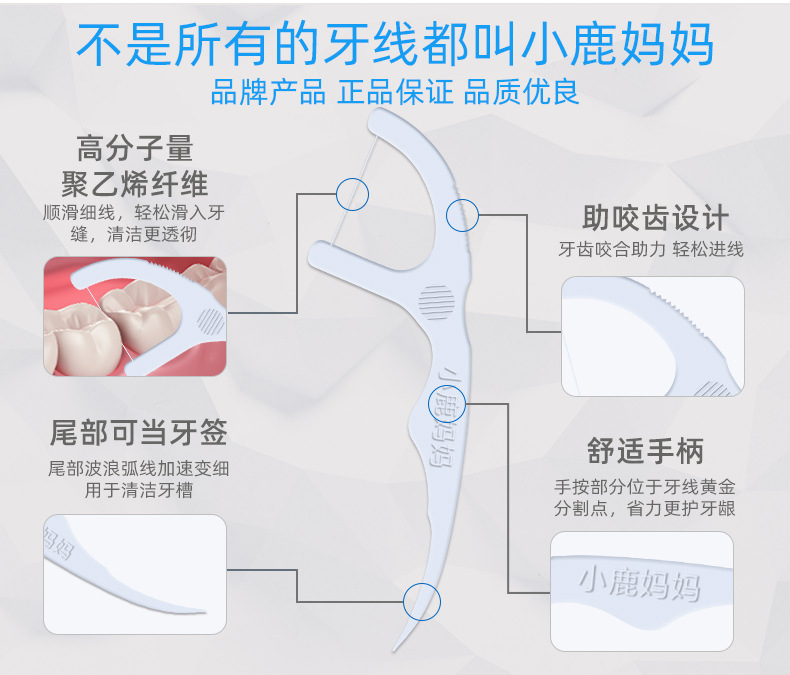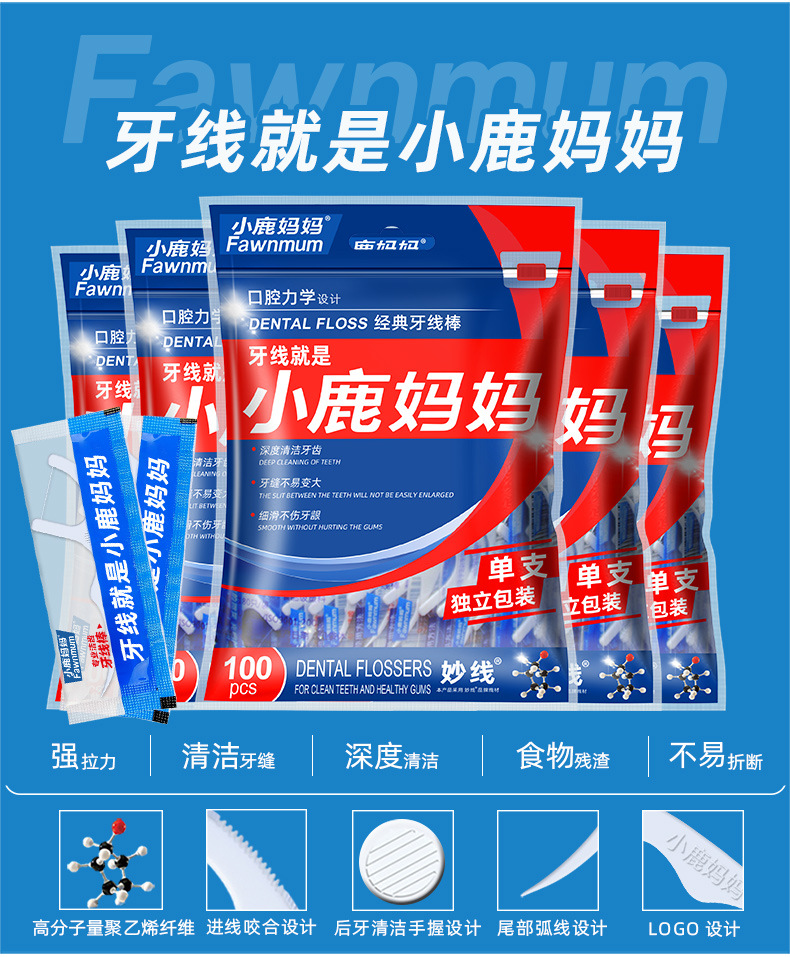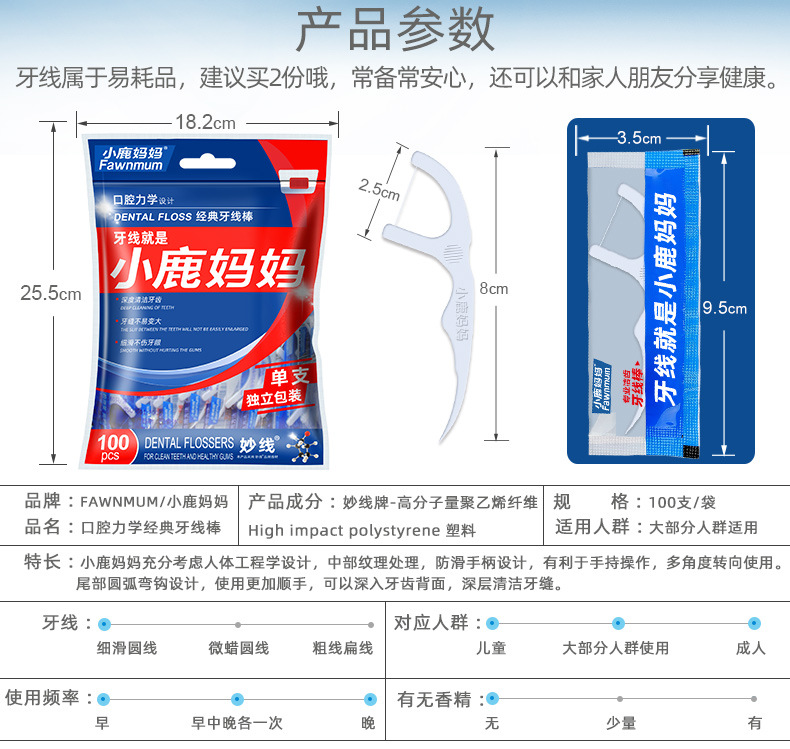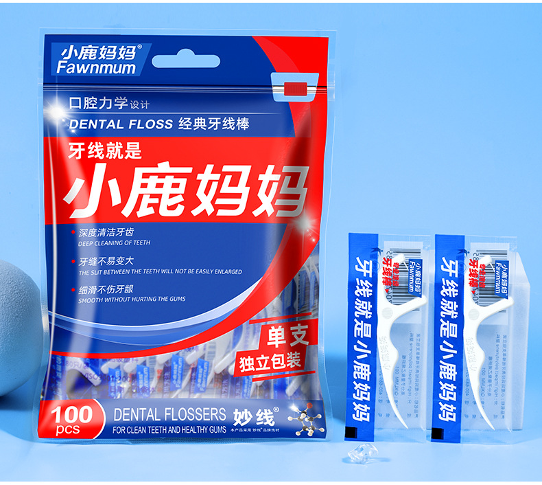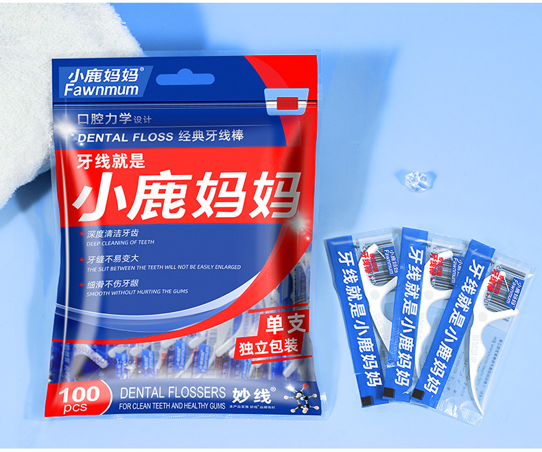小鹿妈妈洁齿护理牙线棒单支独立包装100支/袋 *3 (单位:支) 洁齿护理