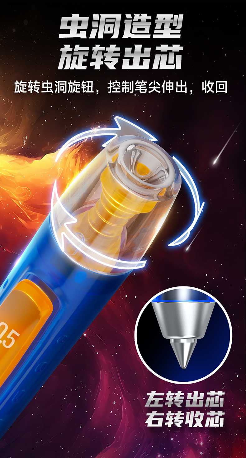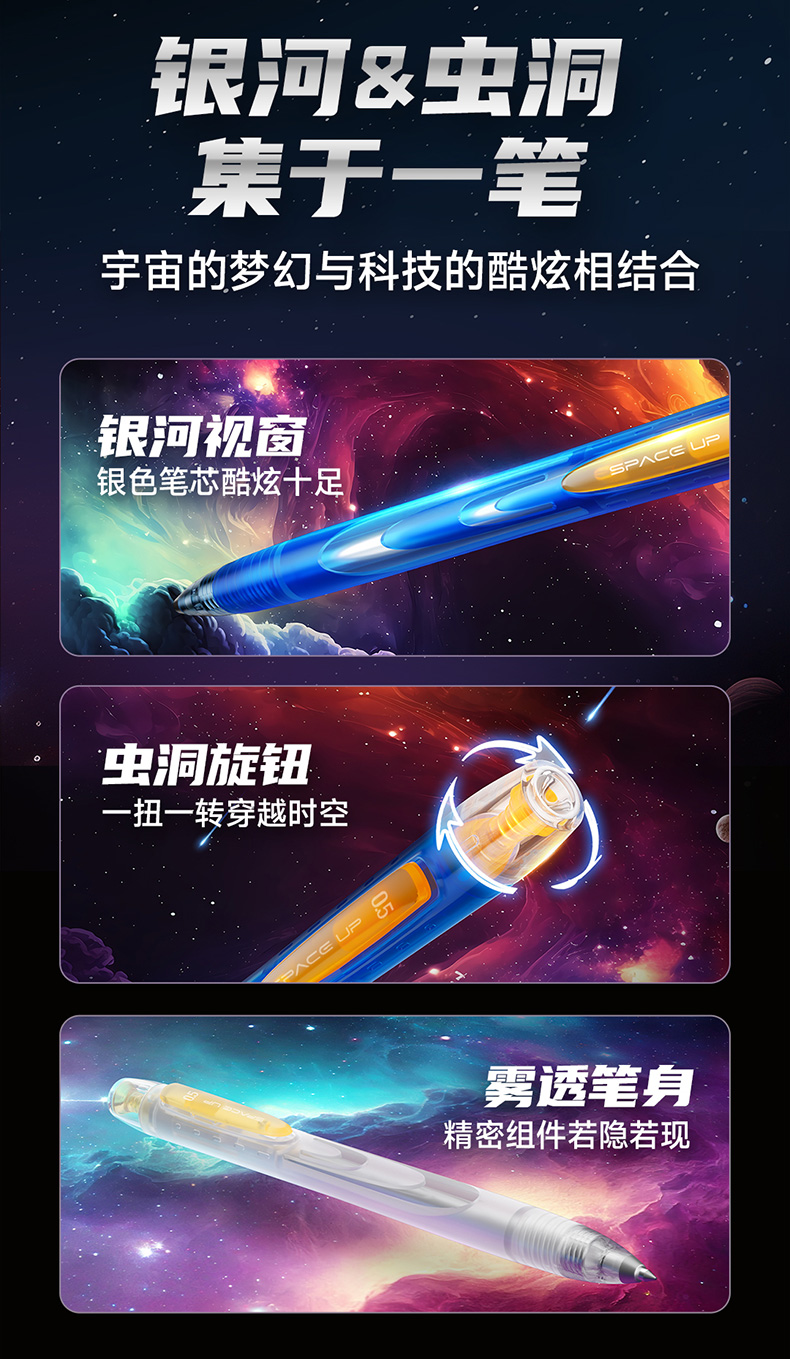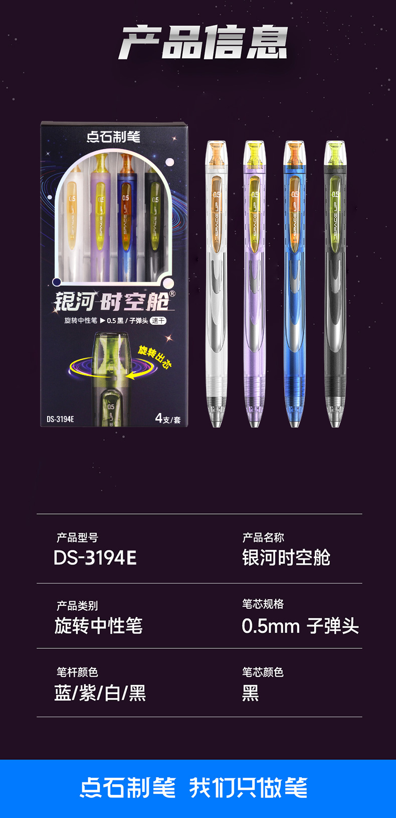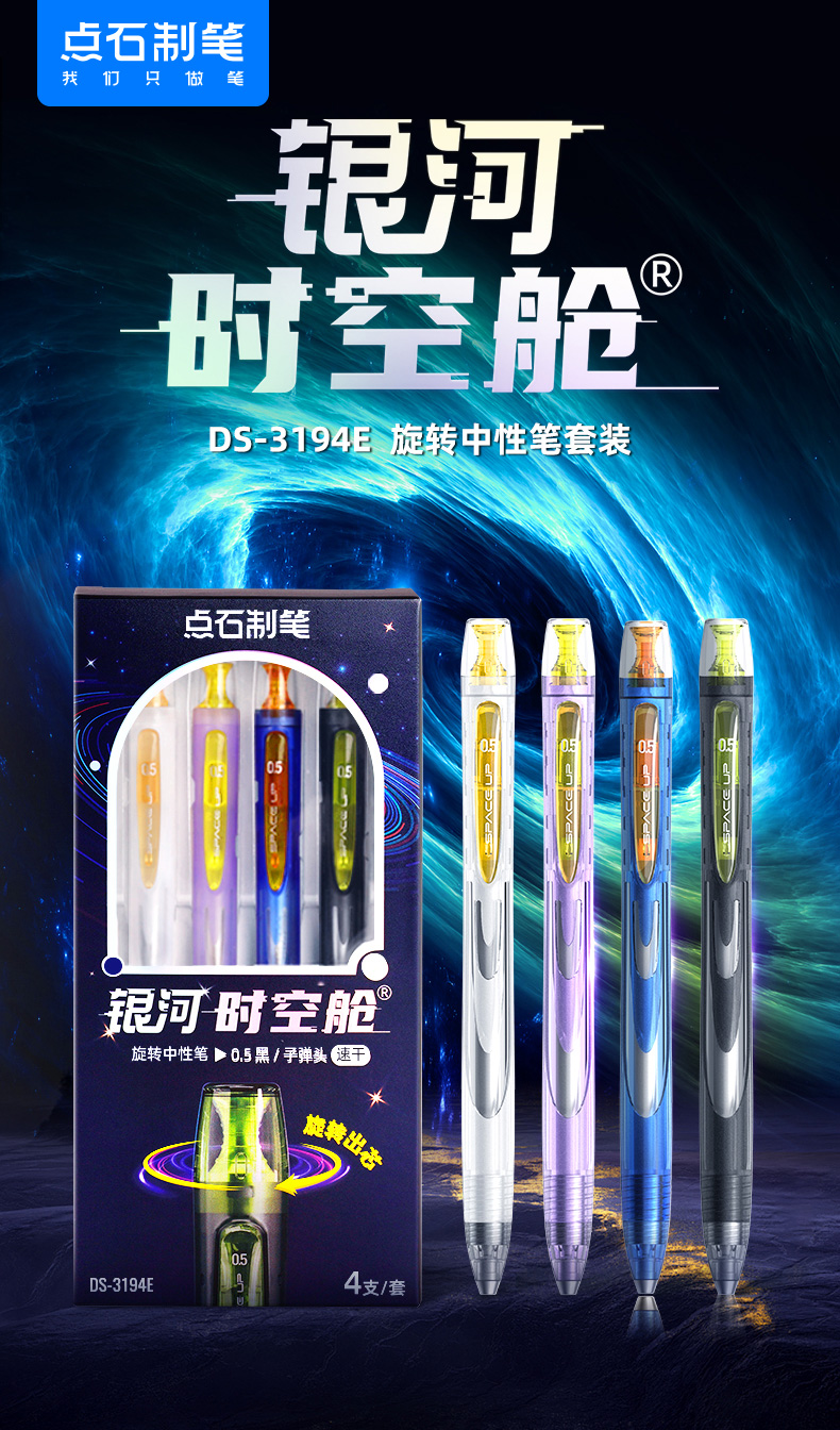 点石制笔银河时空舱速干中性笔旋转出芯升降笔夹双珠黑笔黑芯文具套装DS-3194E 套 黑色