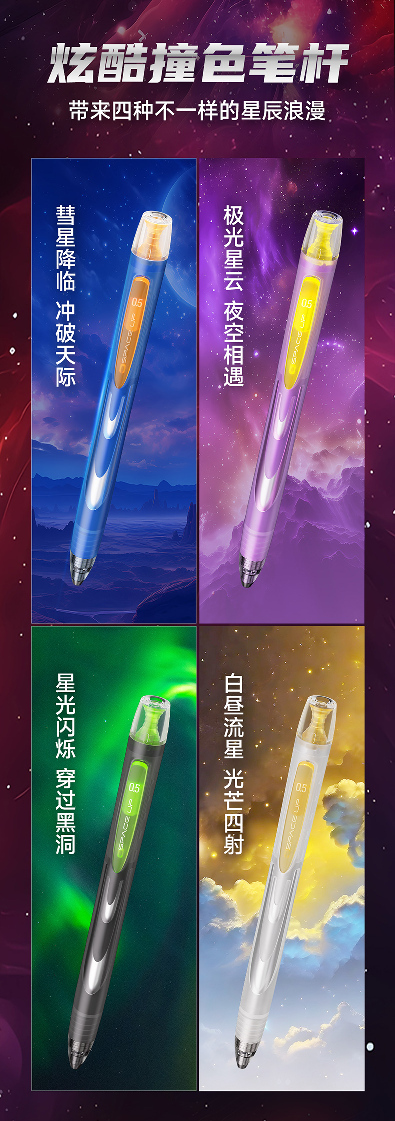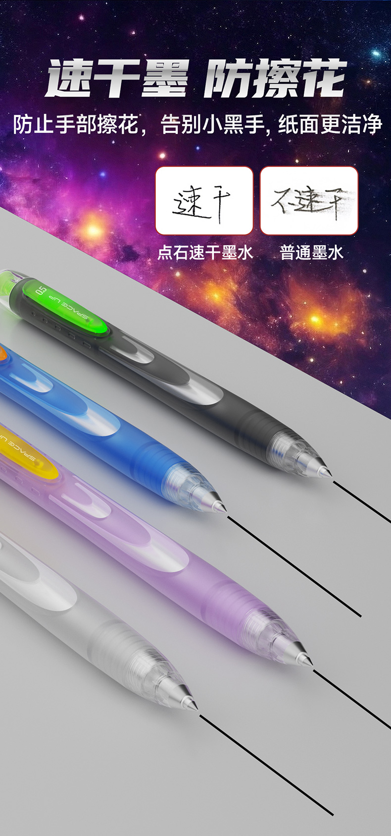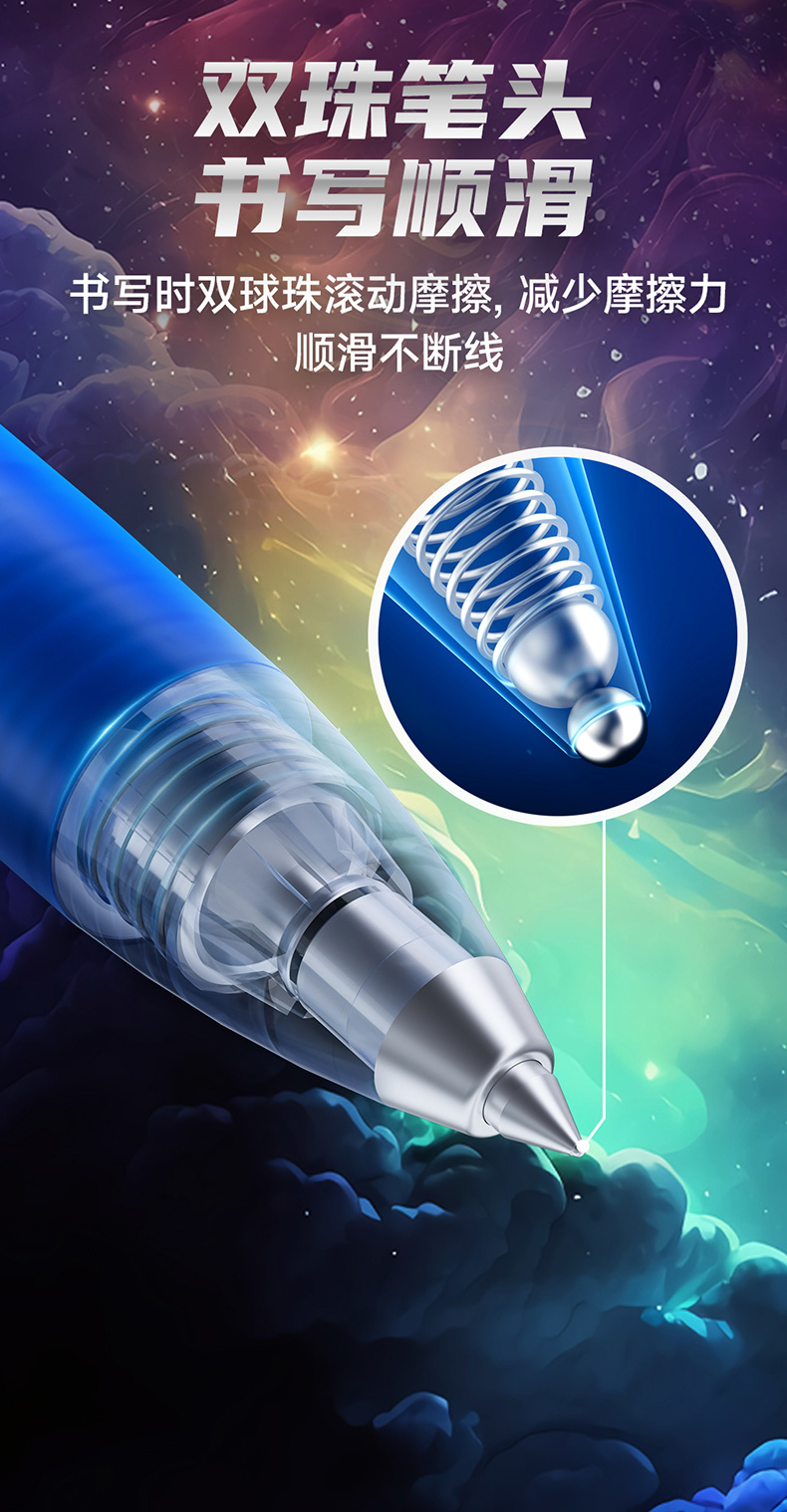 点石制笔银河时空舱速干中性笔旋转出芯升降笔夹双珠黑笔黑芯文具套装DS-3194E 套 黑色