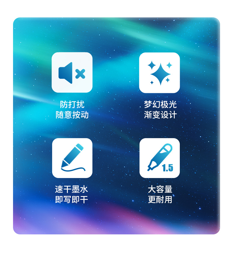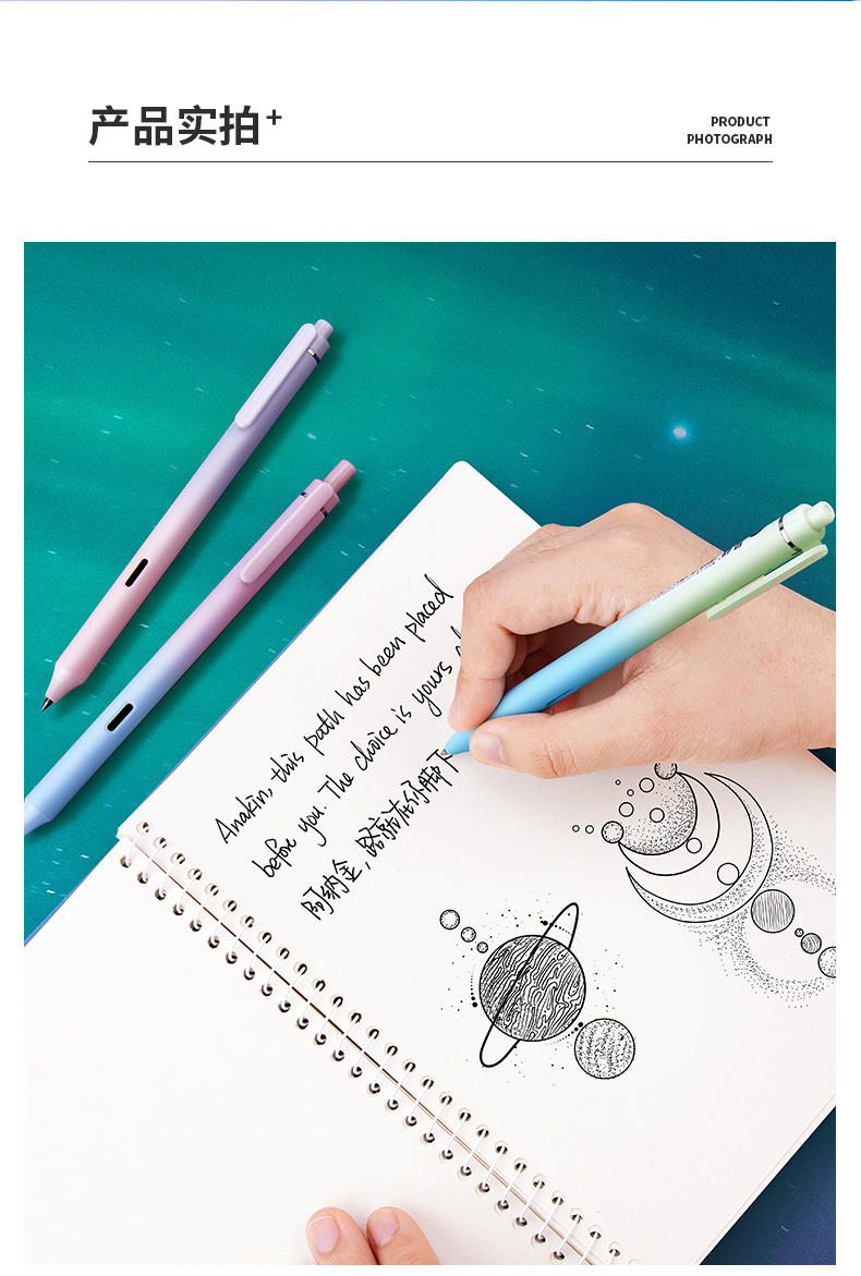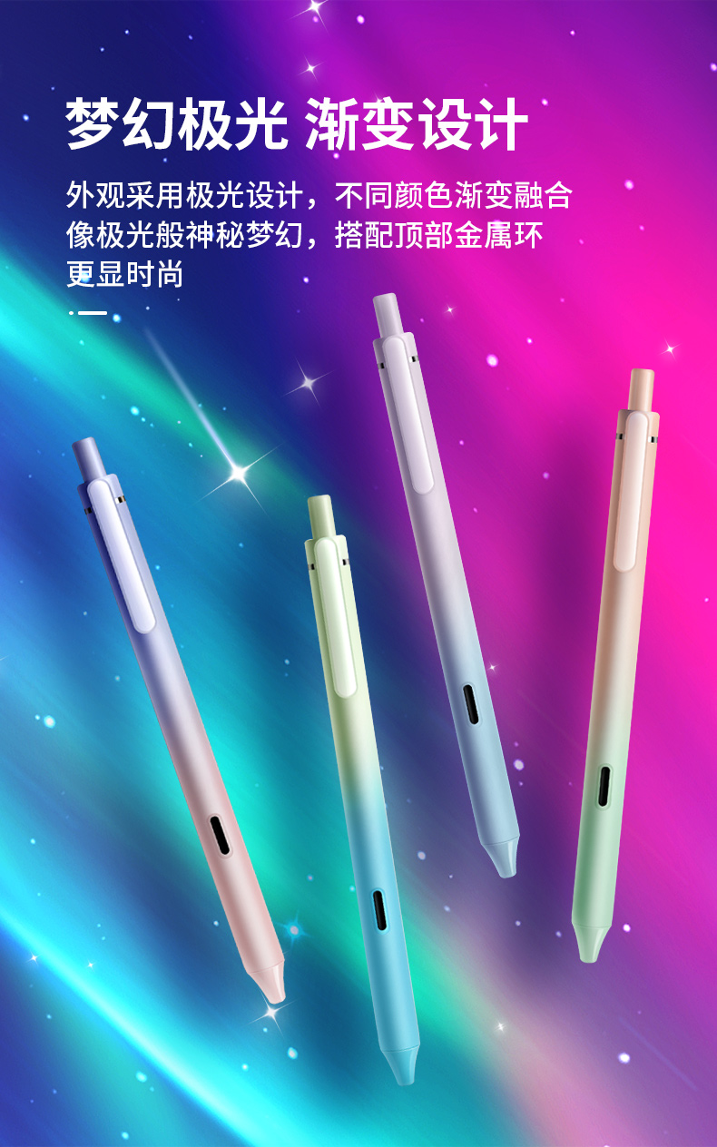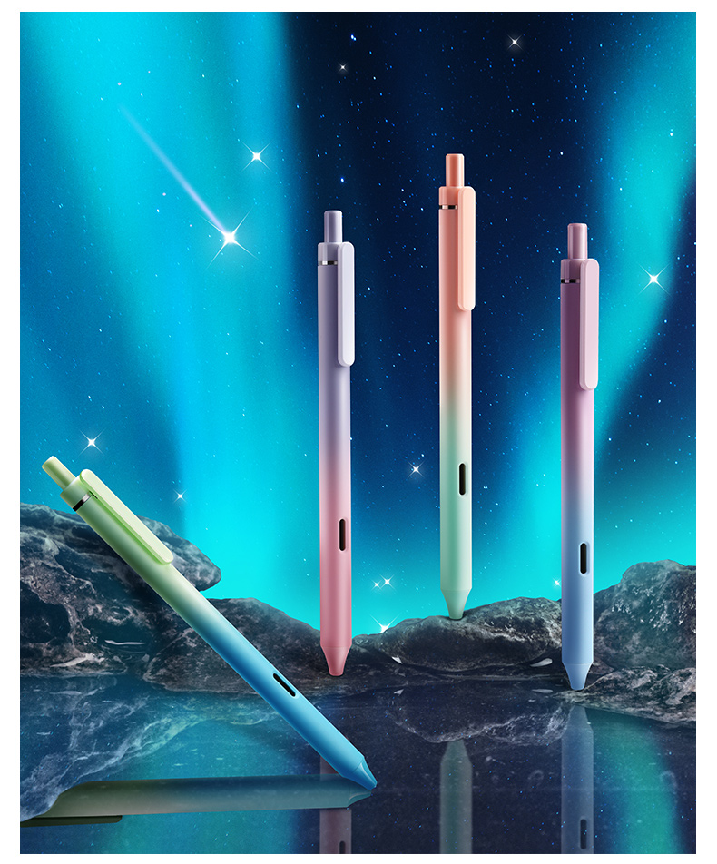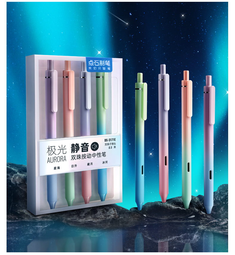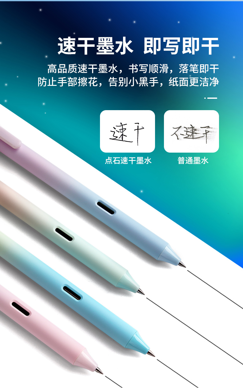 点石渐变双珠按动中性笔高颜值白领女生作业笔记写字用黑笔3171E文具套装 白色