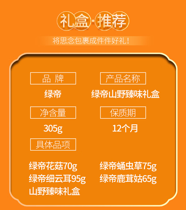 绿帝(GREEN KING)菌菇 山野臻味305G(单位:盒) 灰橙色