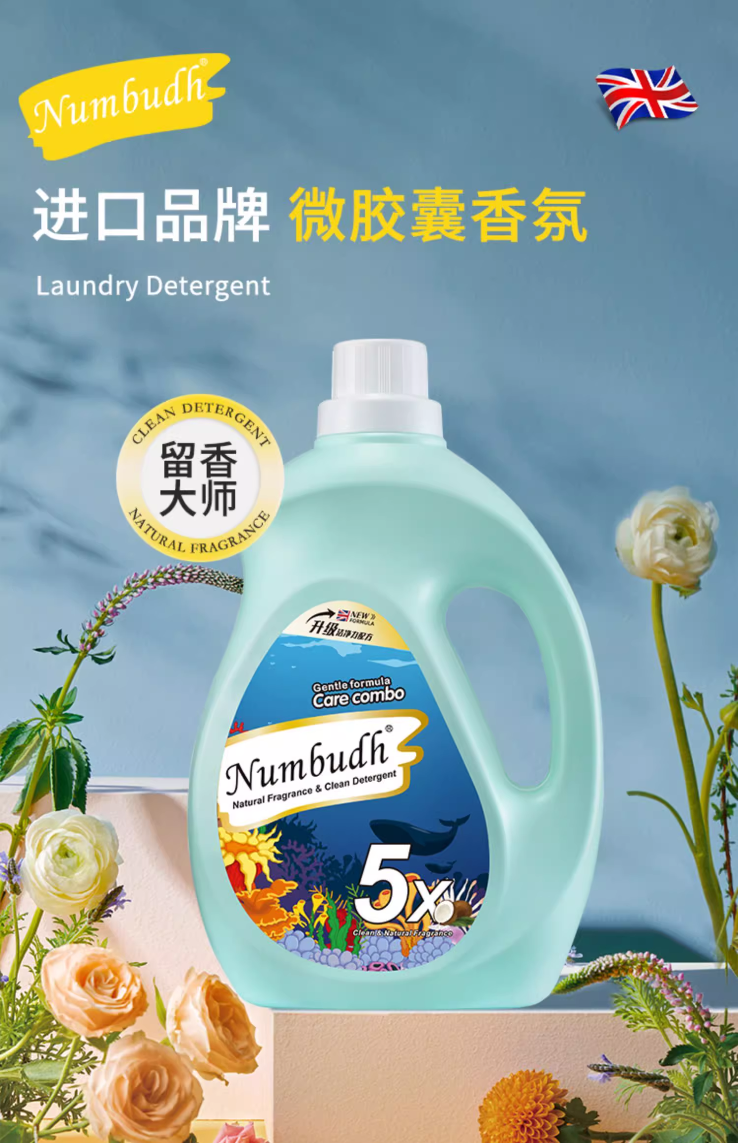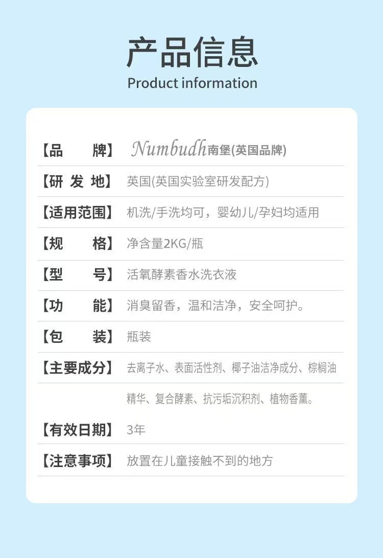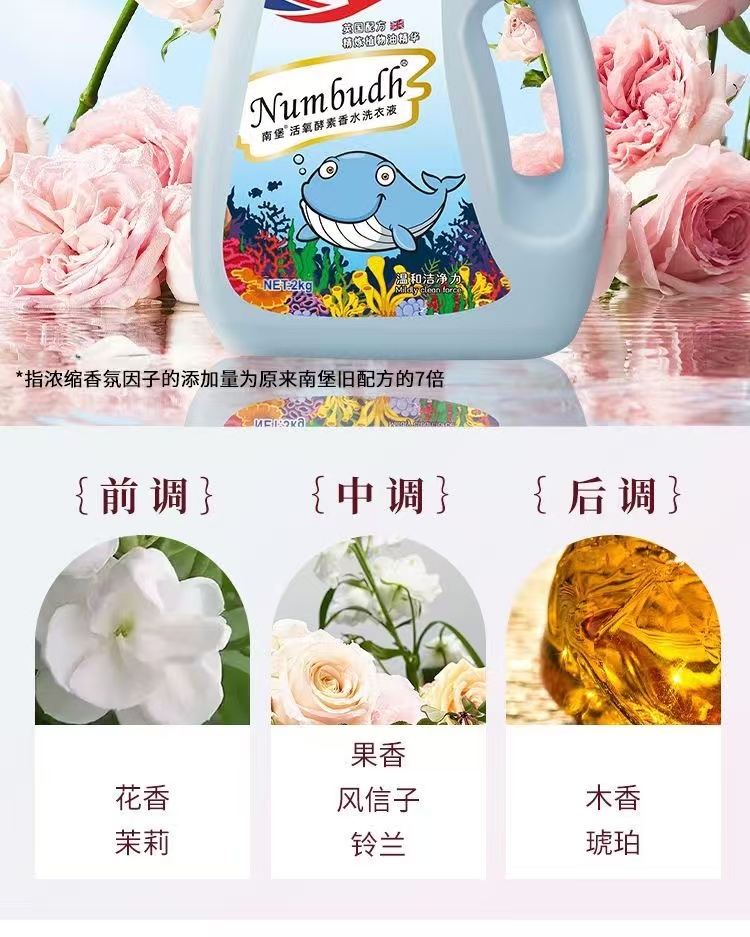 南堡(NUMBUDH)活氧酵素香水洗衣液 2kg*4瓶 珍珠灰
