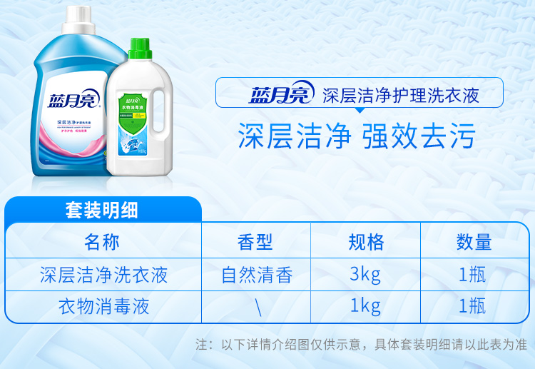 蓝月亮自然洁净洗衣液3kg+衣物消毒液1kg,80001986(单位:套) 蓝色