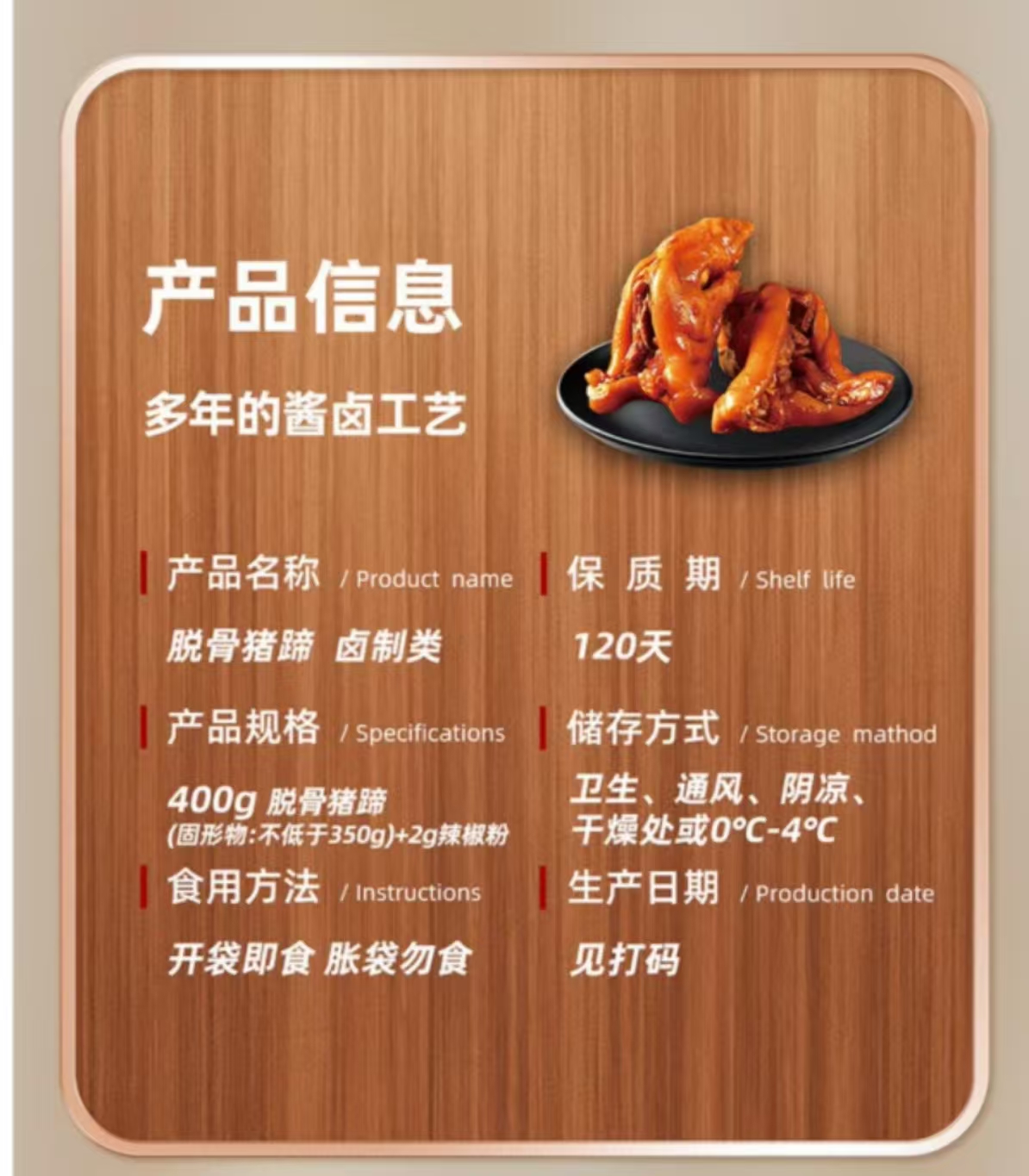 喜旺(Siwin Foods)脱骨猪蹄400g*1酱卤猪脚带筋红烧猪蹄子开袋即食(单位:袋) 褐色