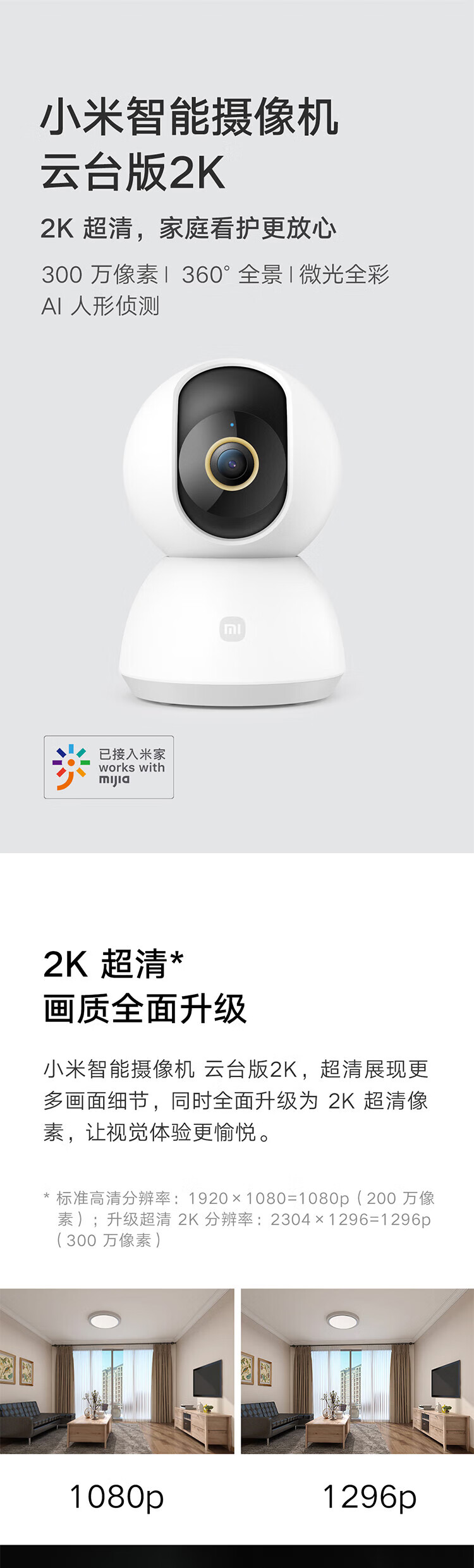 小米(MI) 智能摄像机 云台版2K/个 白色