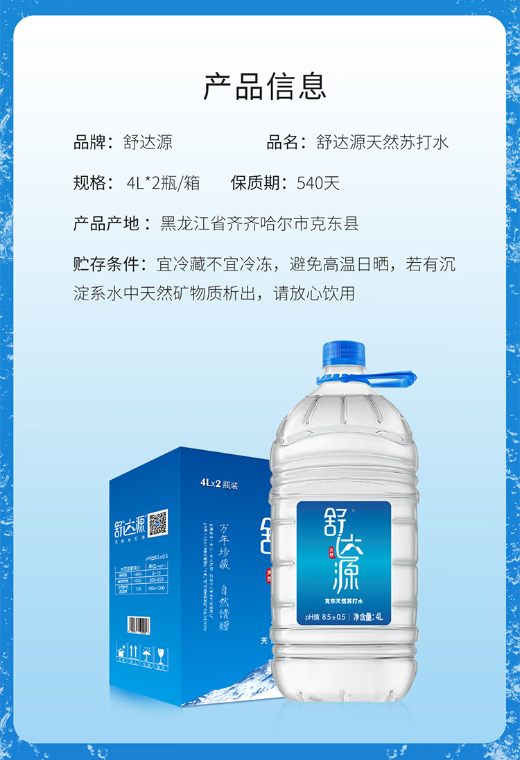 舒达源 SDY4000 天然苏打水4L*2桶 弱碱性饮用水低氘水 宝石蓝(单位:箱)