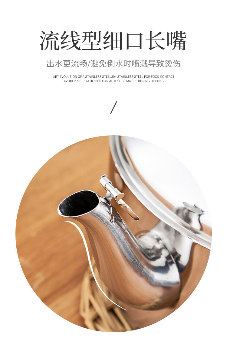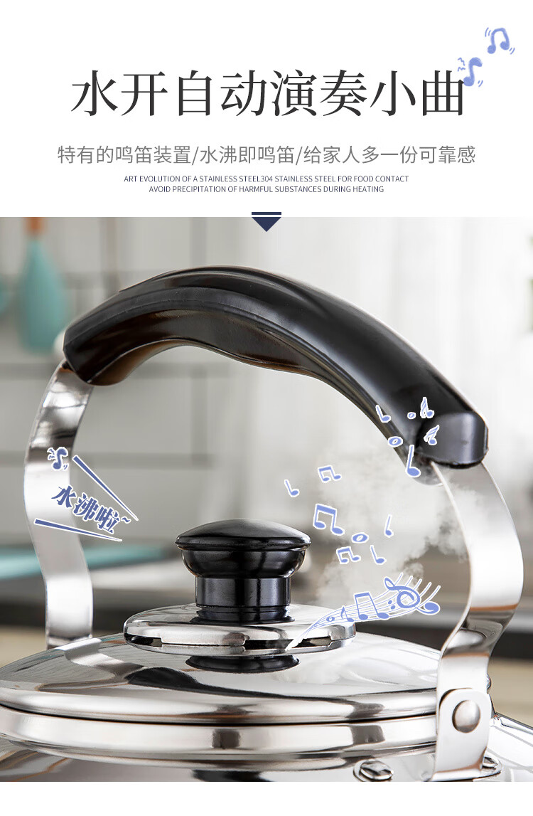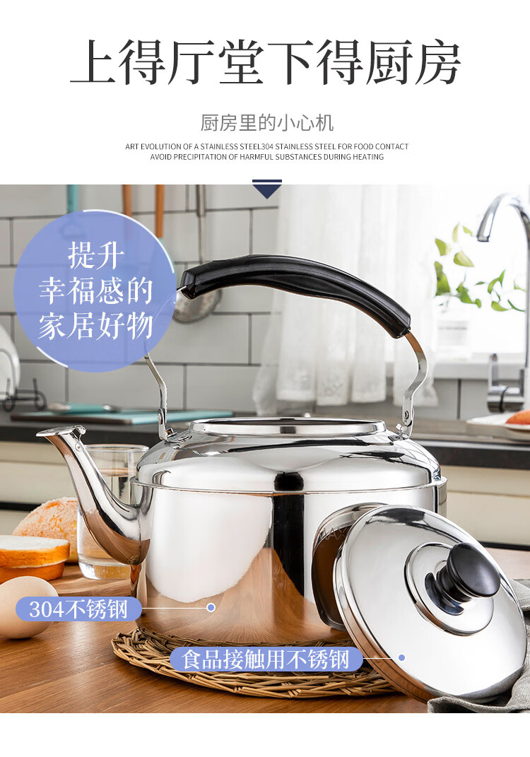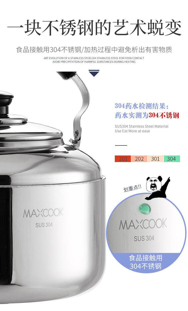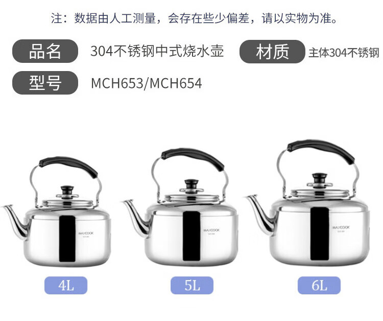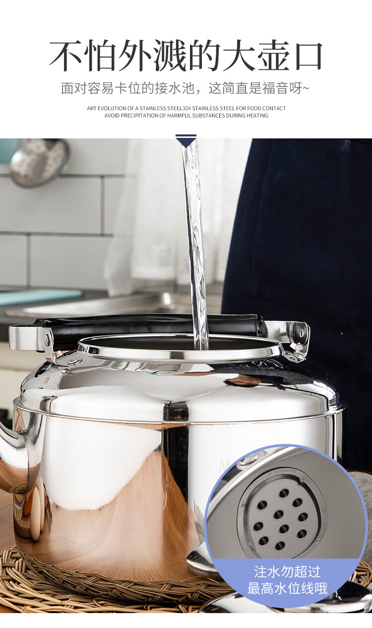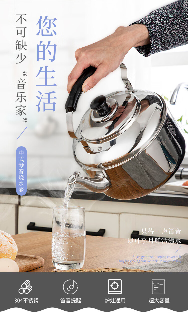 美厨雅格系列304不锈钢中式鸣音水壶5L MCH653 不锈钢