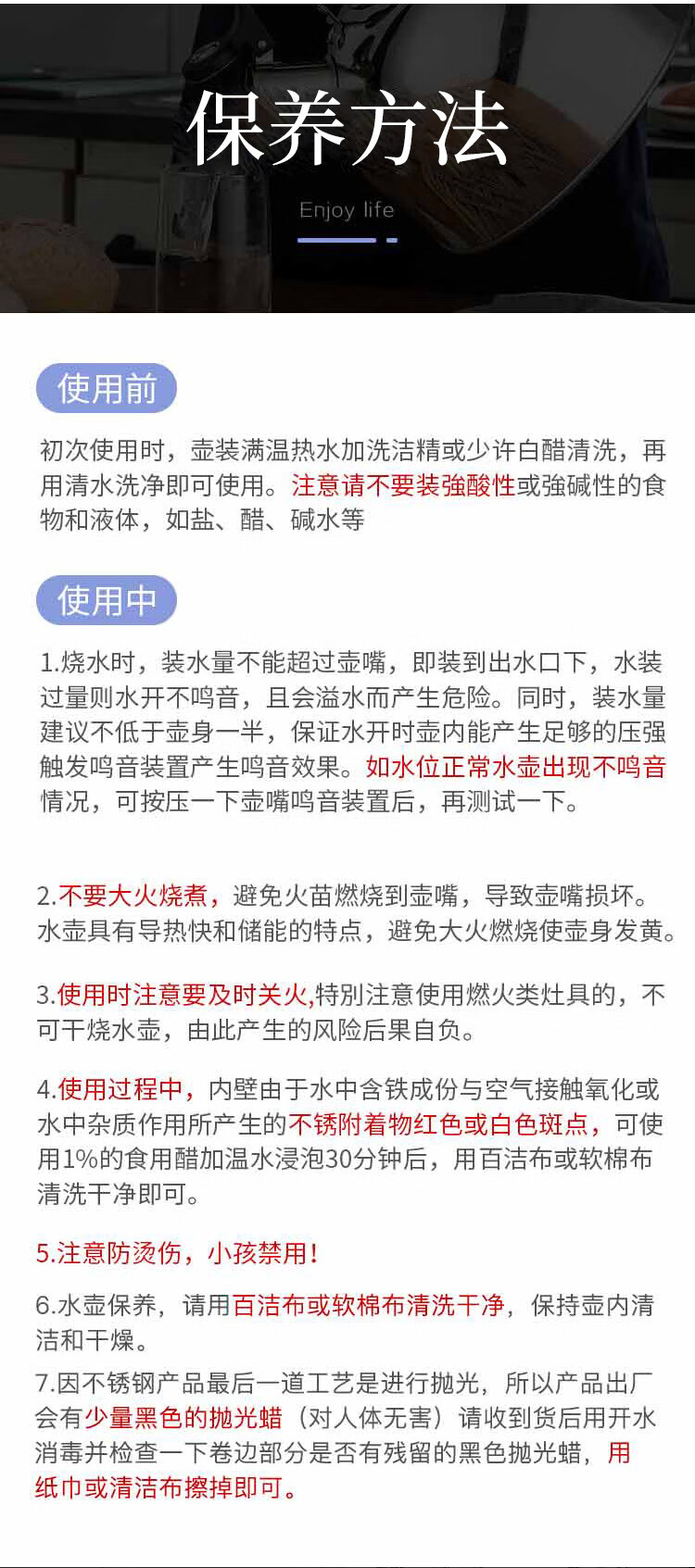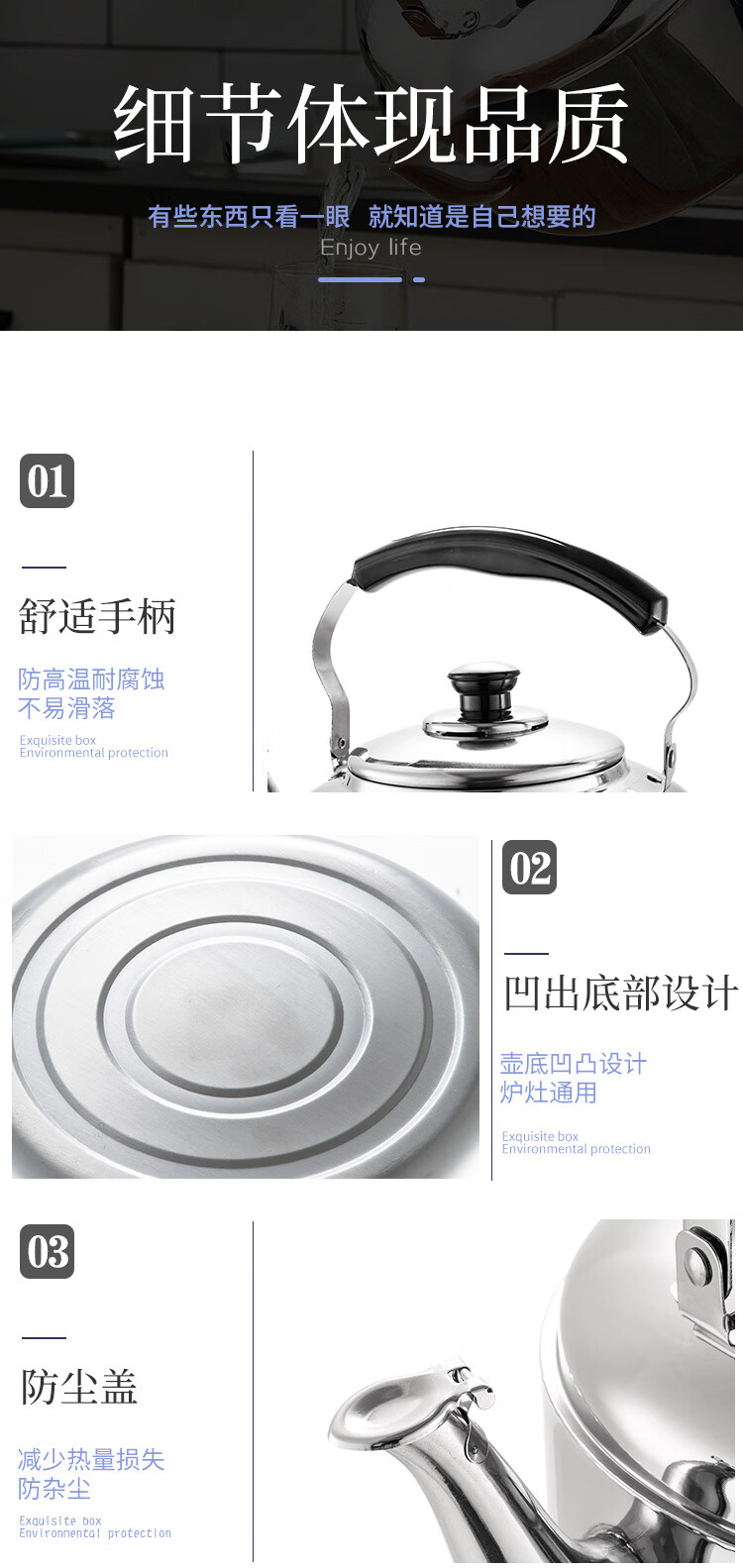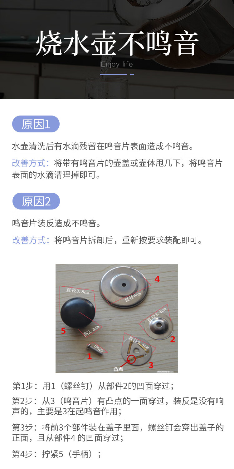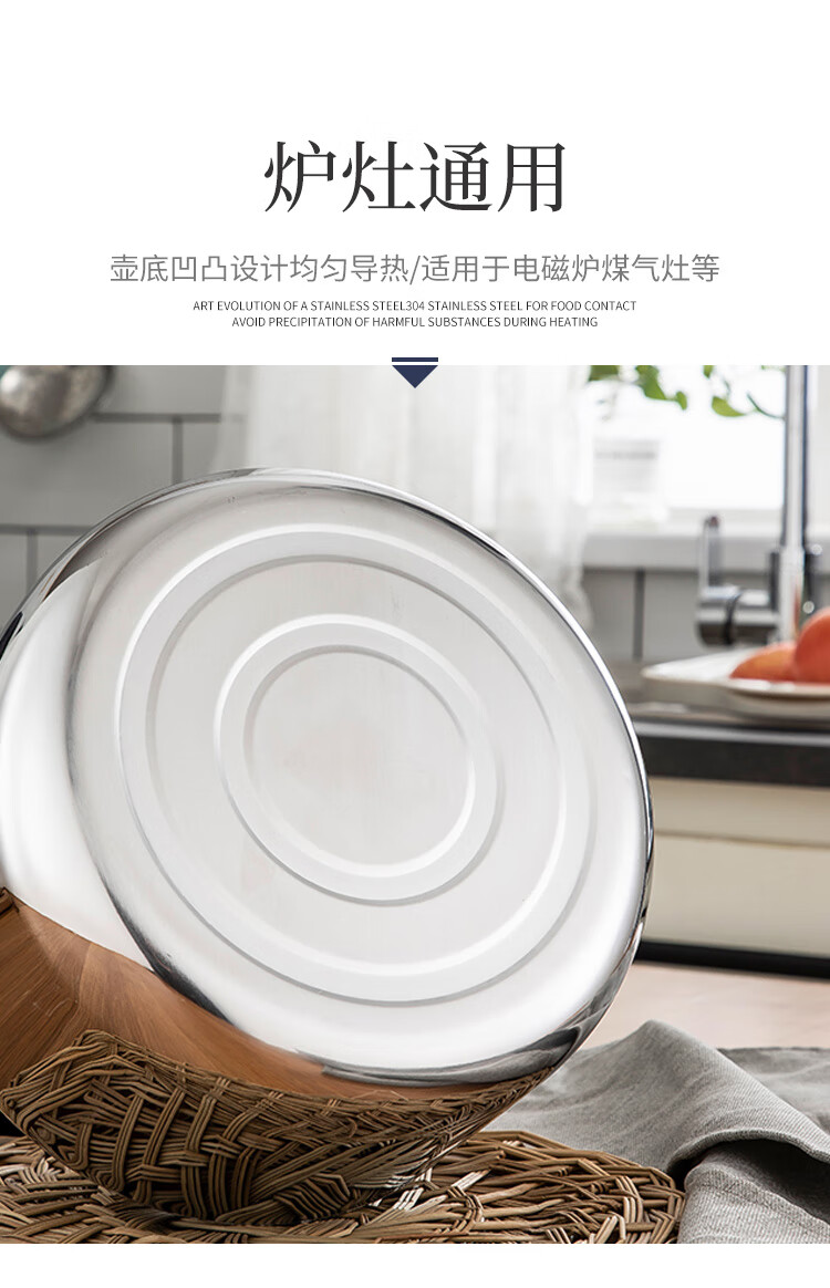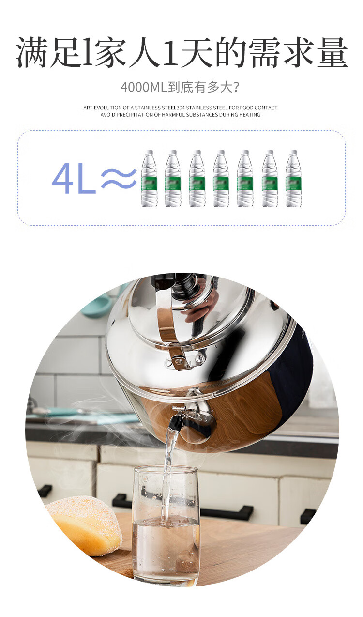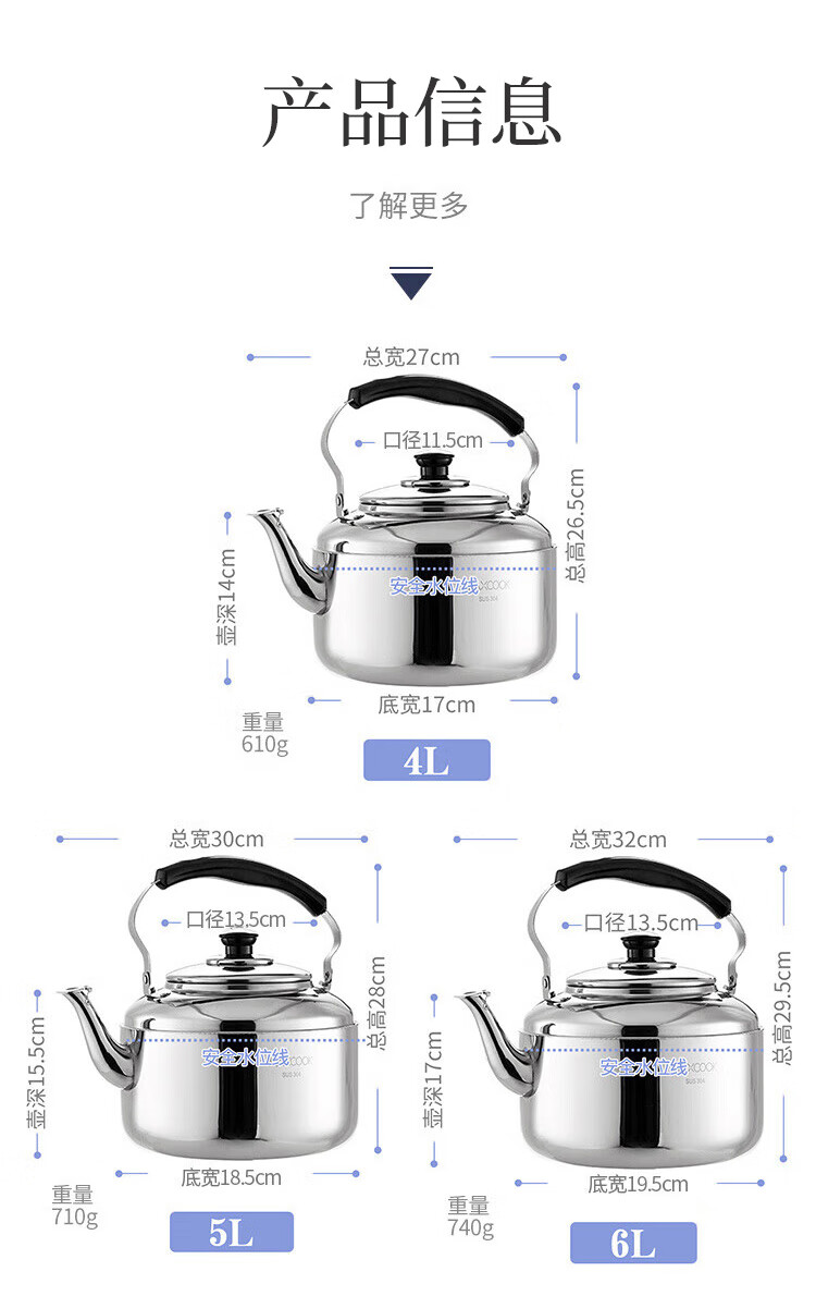 美厨雅格系列304不锈钢中式鸣音水壶5L MCH653 不锈钢