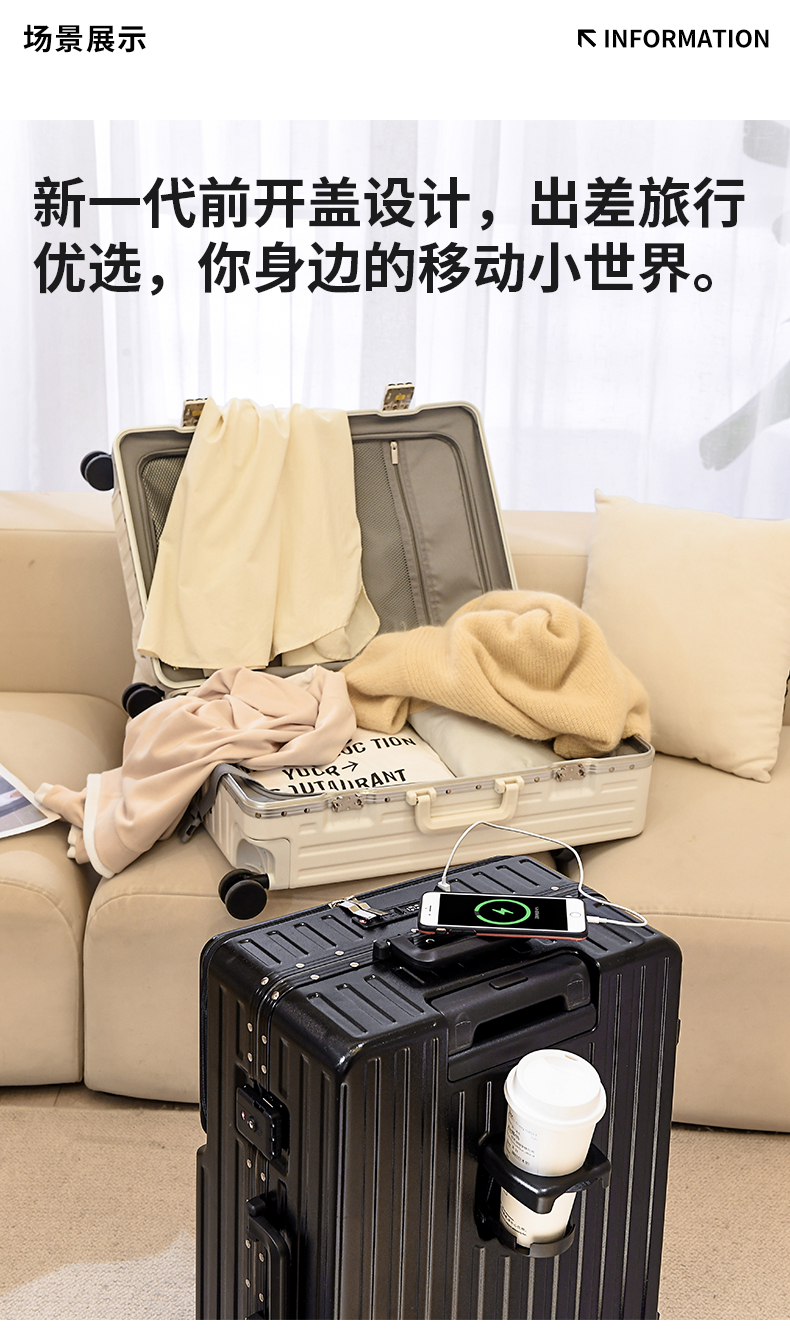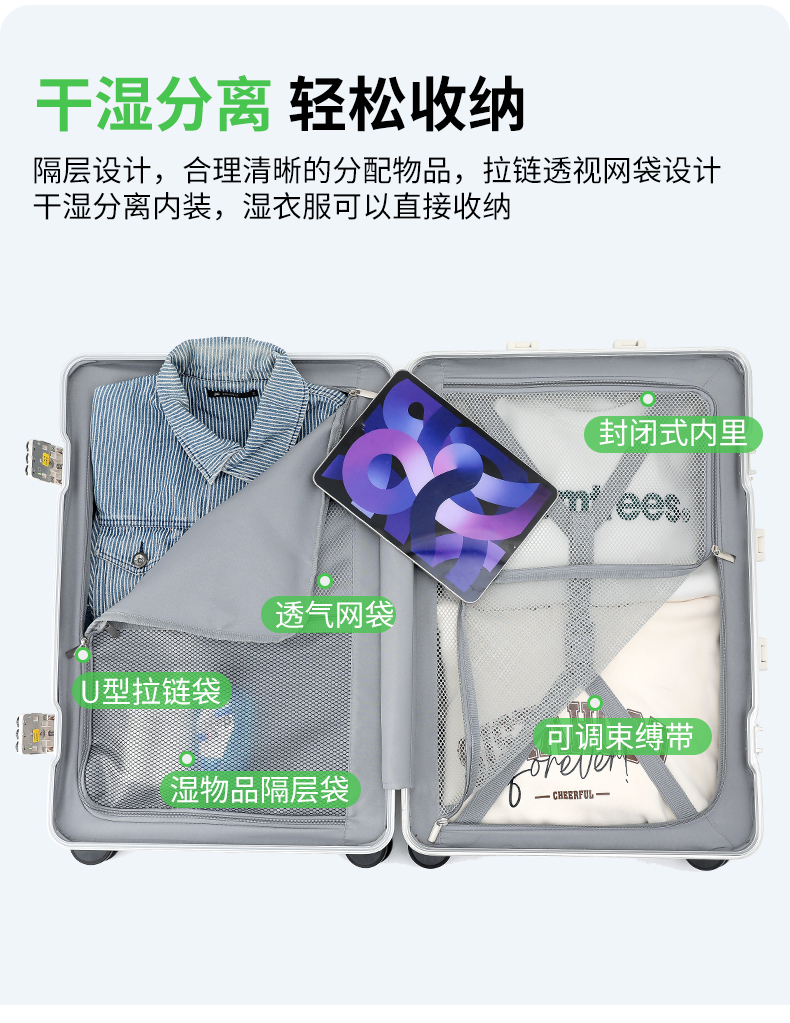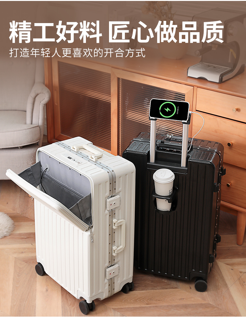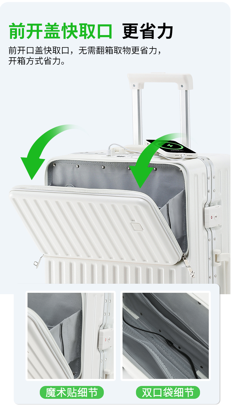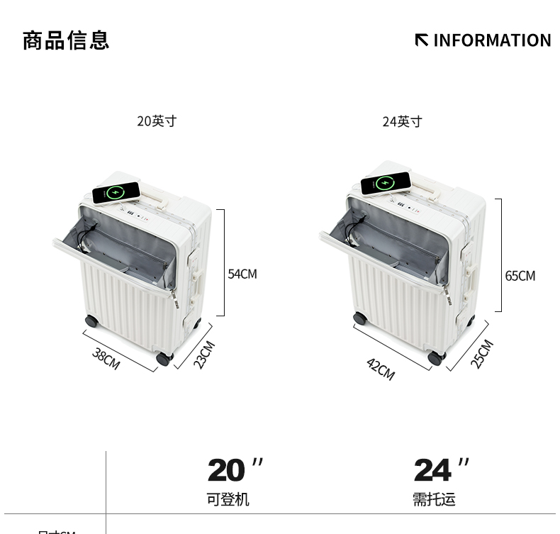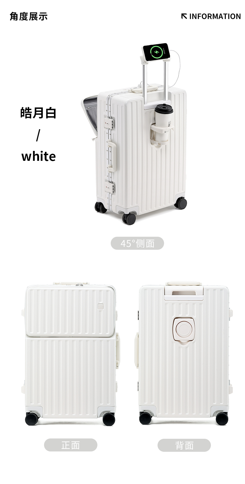 DULA 2070 商务前开口系列 铝框行李箱 20寸 皓月白(单位:个)