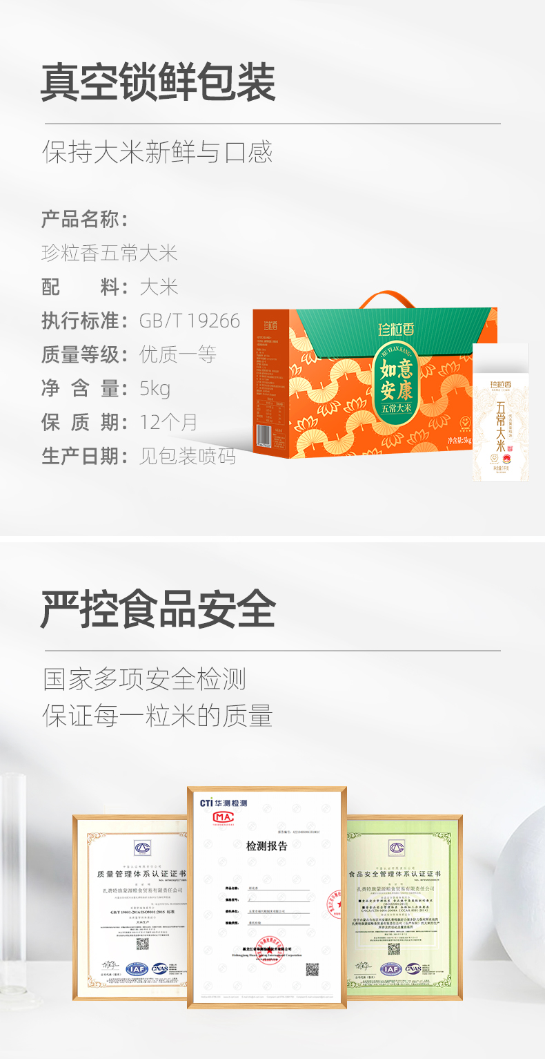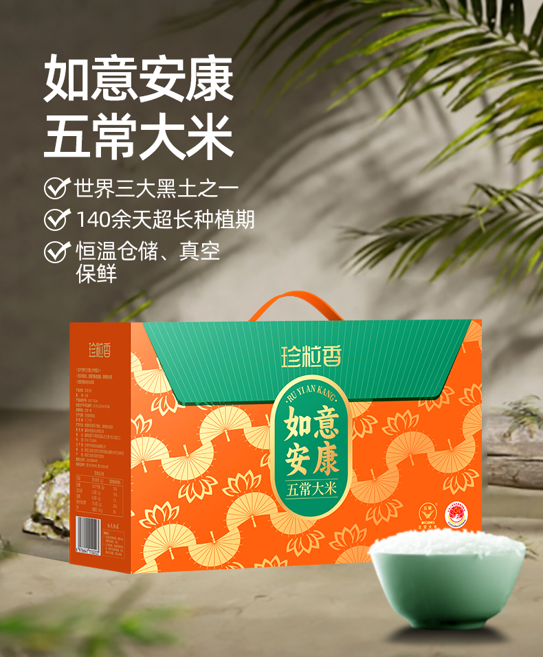 珍粒香 五常大米稻花香2号 如意安康 5kg(1kg*5小袋)礼盒装 混色(单位:盒)