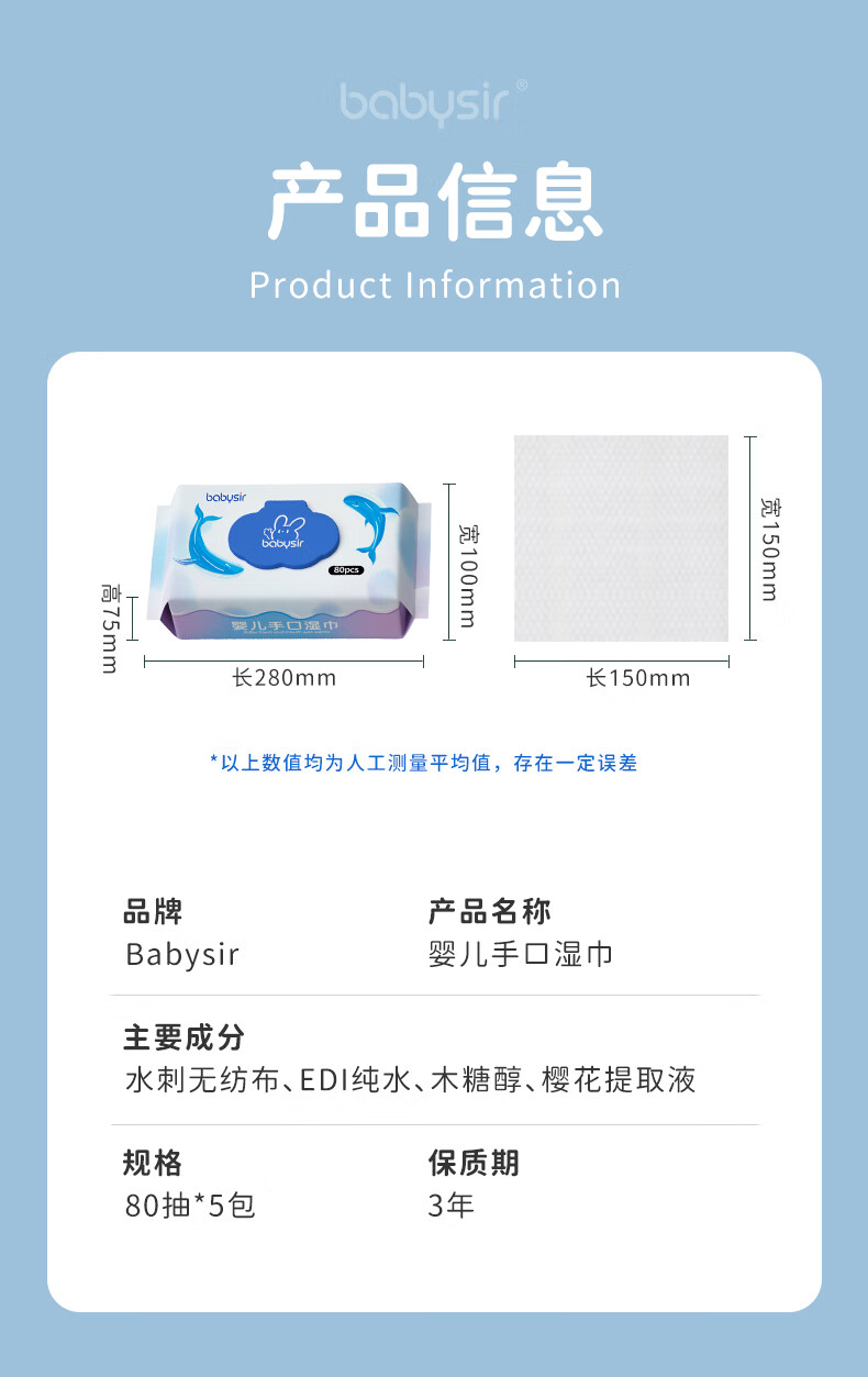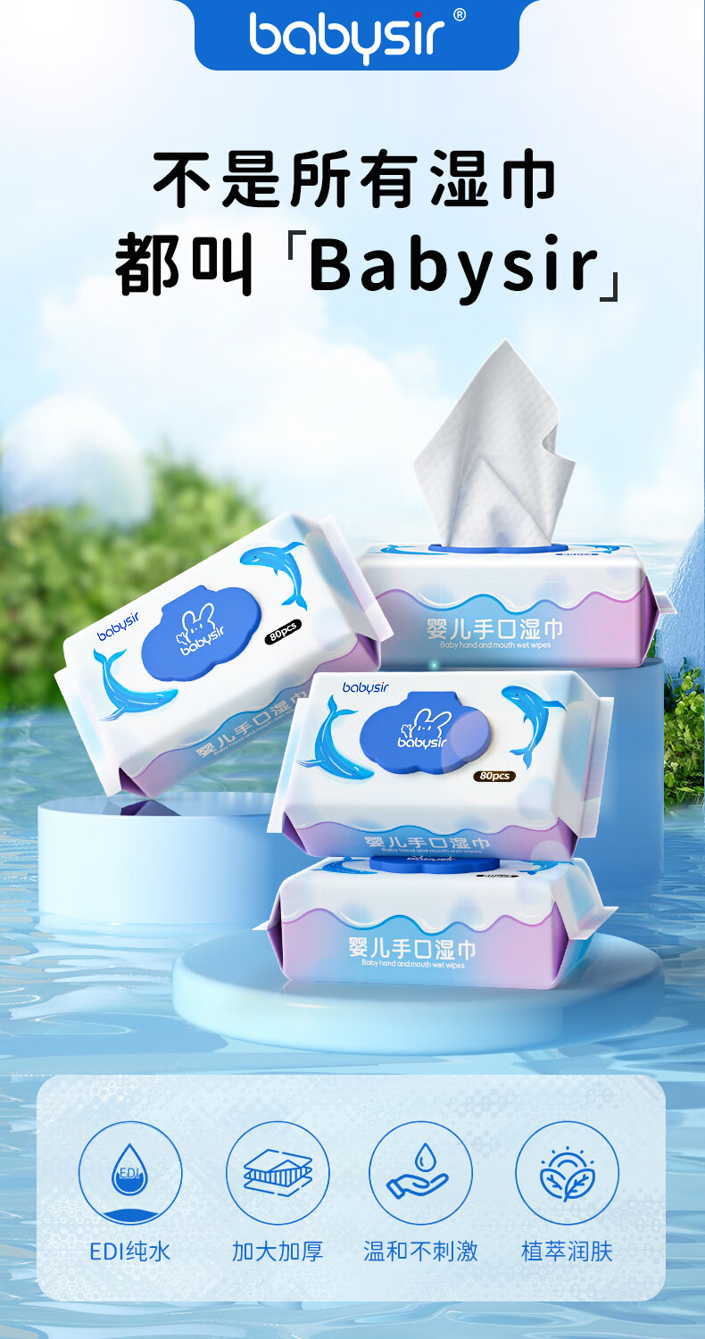 Babysir婴儿手口湿巾80抽/包*5包(单位:包) 蓝色