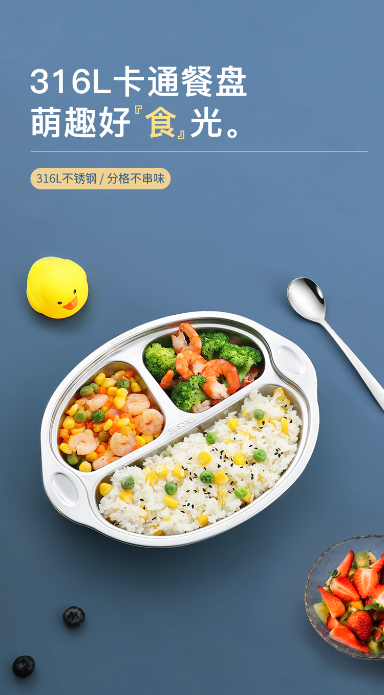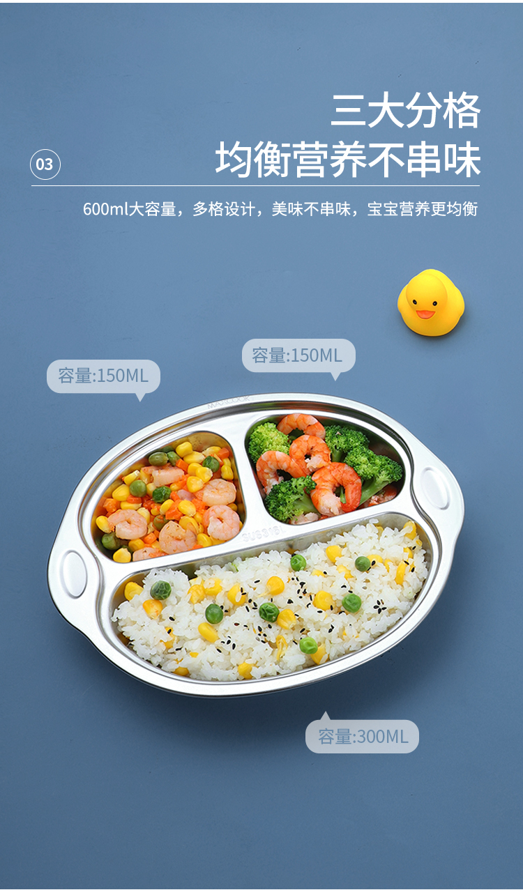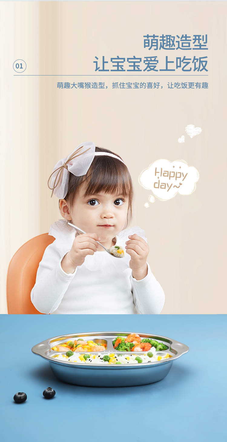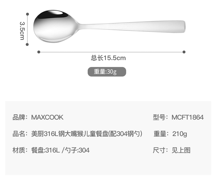 美厨316不锈钢大嘴猴系列儿童餐盘 MCFT1864 不锈钢色