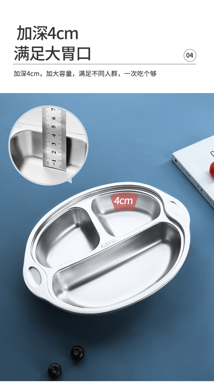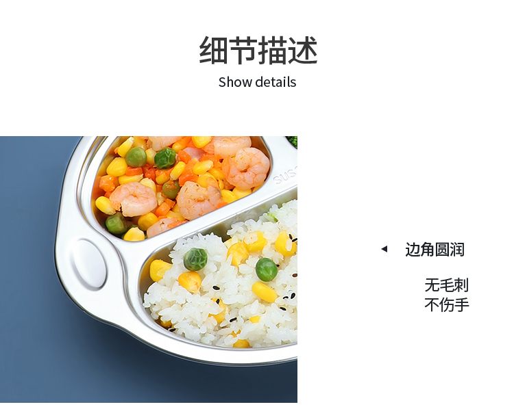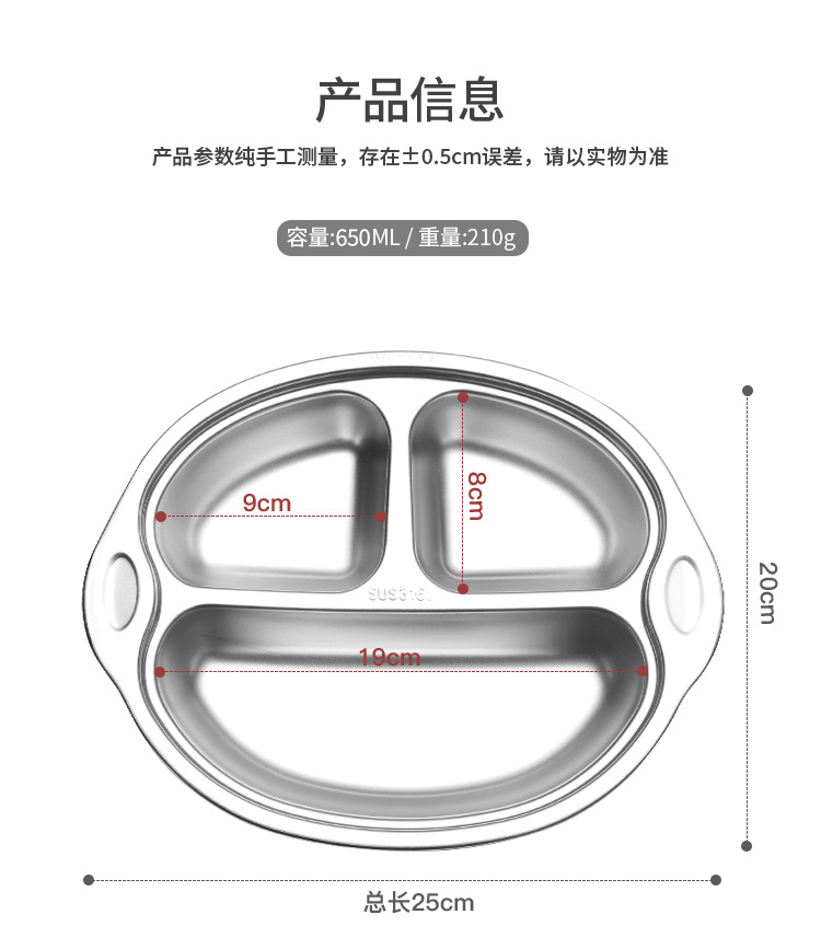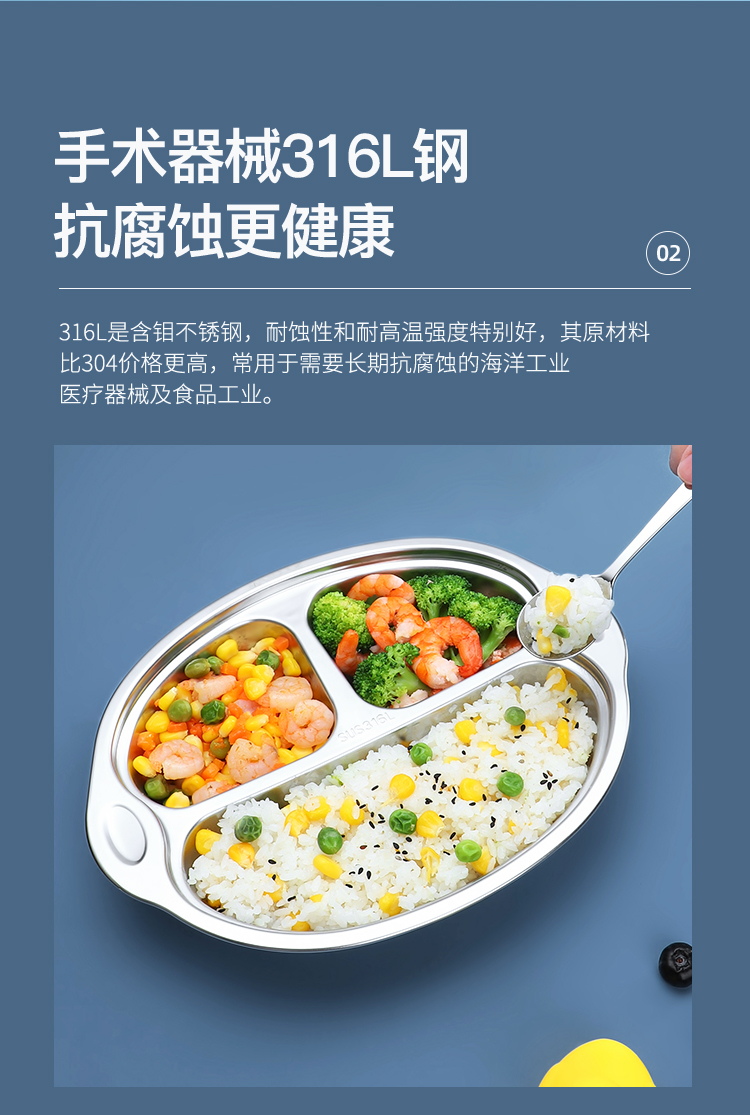 美厨316不锈钢大嘴猴系列儿童餐盘 MCFT1864 不锈钢色