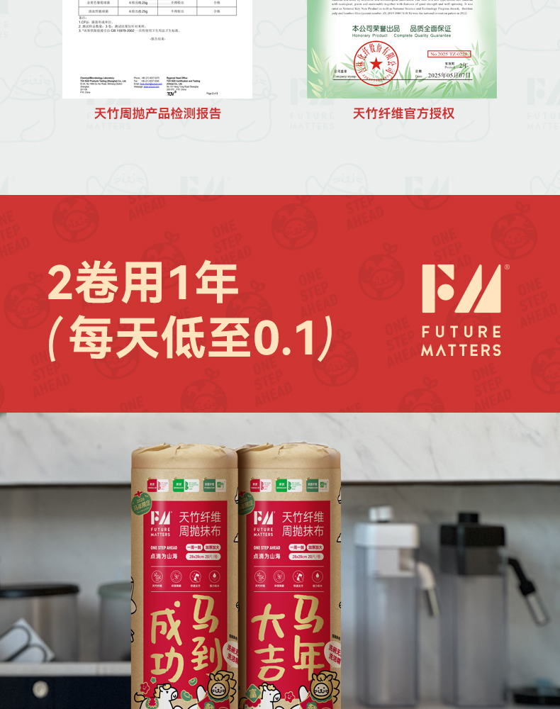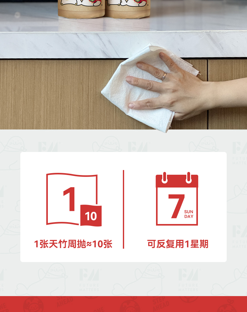 FUTURE MATTERS 天竹纤维新年周抛抹布 28*28cm/张 20片/卷*2 红色(单位:组)