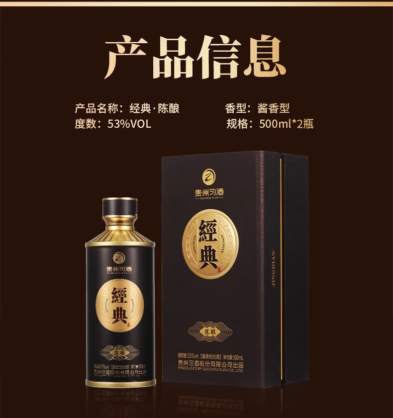 习酒 经典陈酿 500ml*2瓶 53度酱香型白酒 棕色(单位:套)