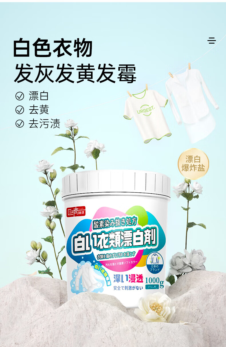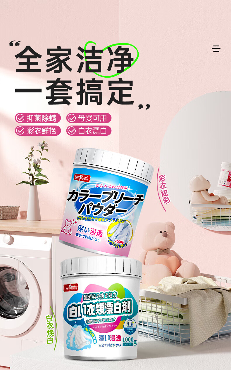 巨奇(JUQI) 彩漂粉+漂白剂 1000g*2瓶 活氧爆炸盐套装 白色(单位:组)