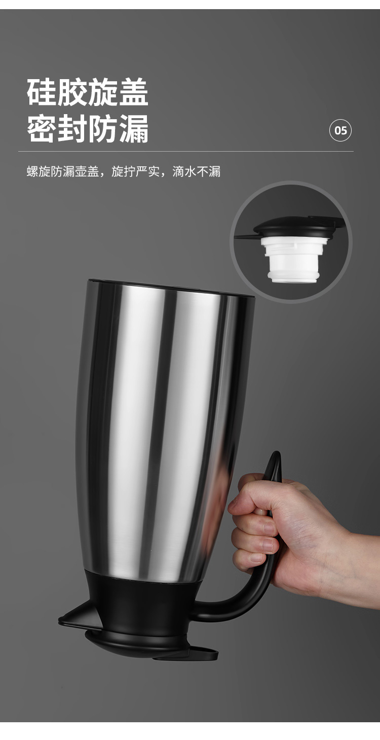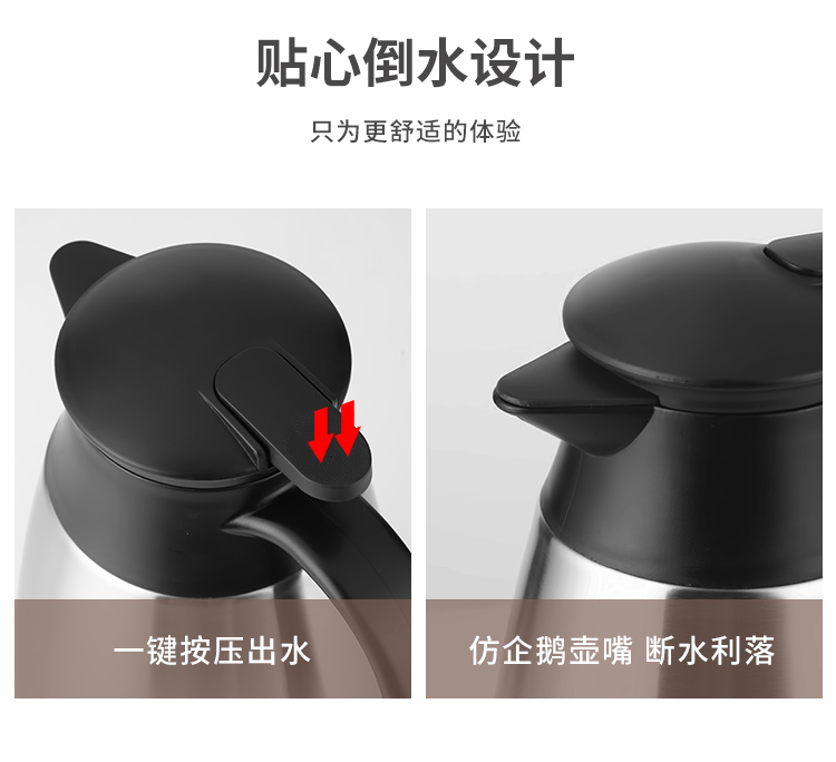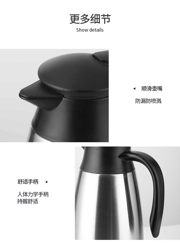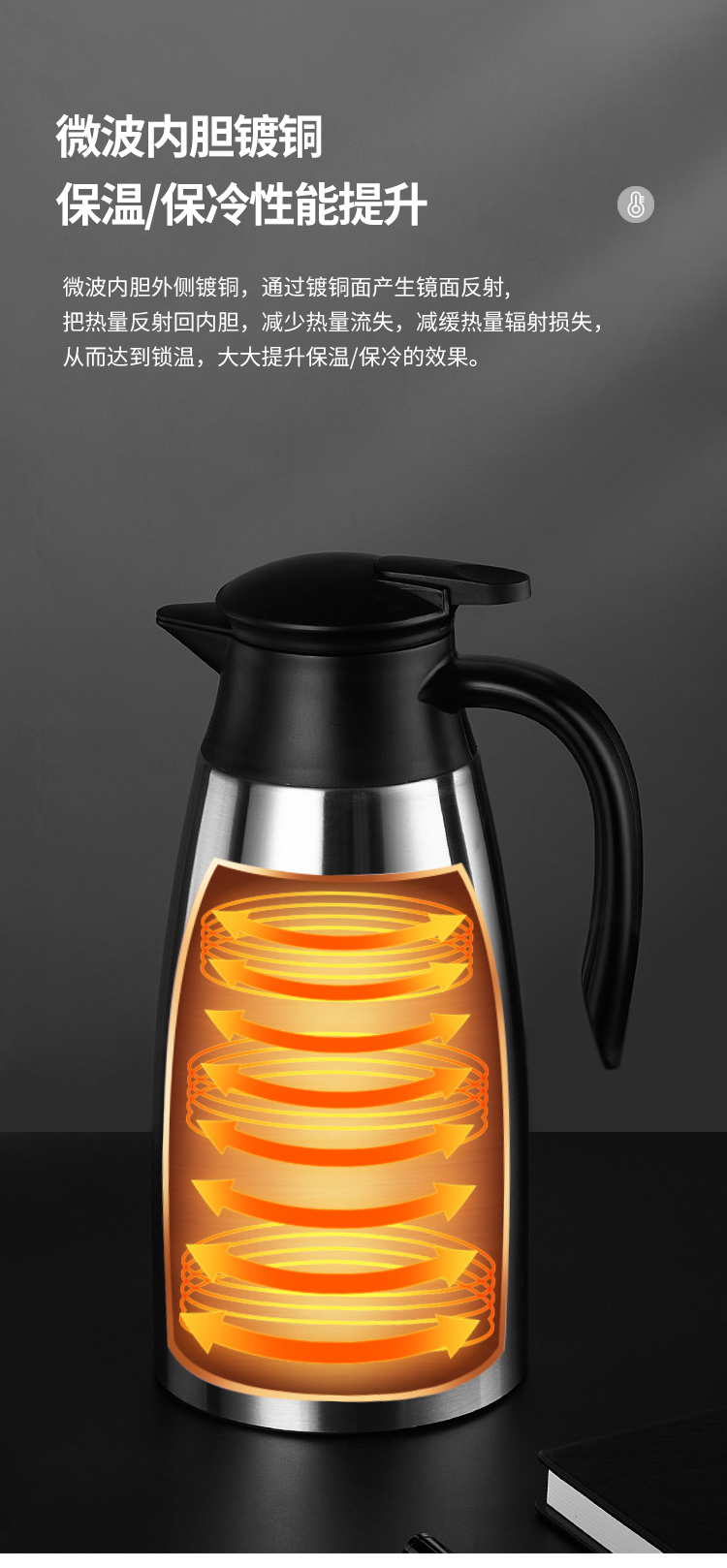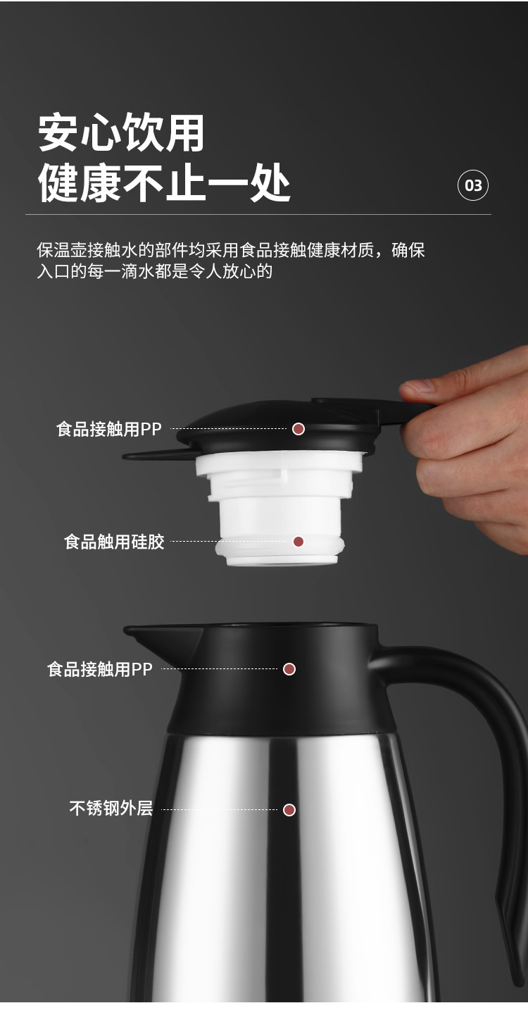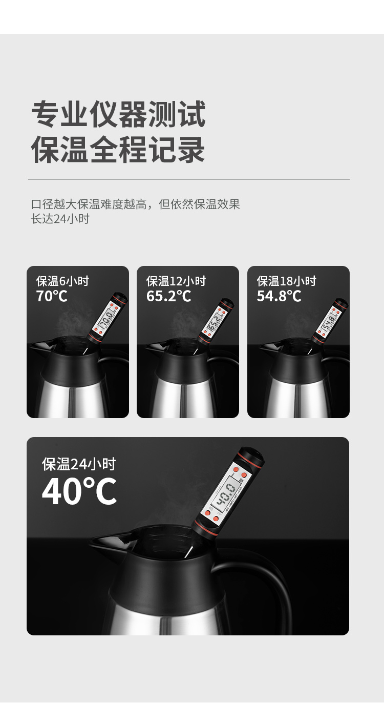美厨304不锈钢真空保温壶水壶2L MCB390 不锈钢色