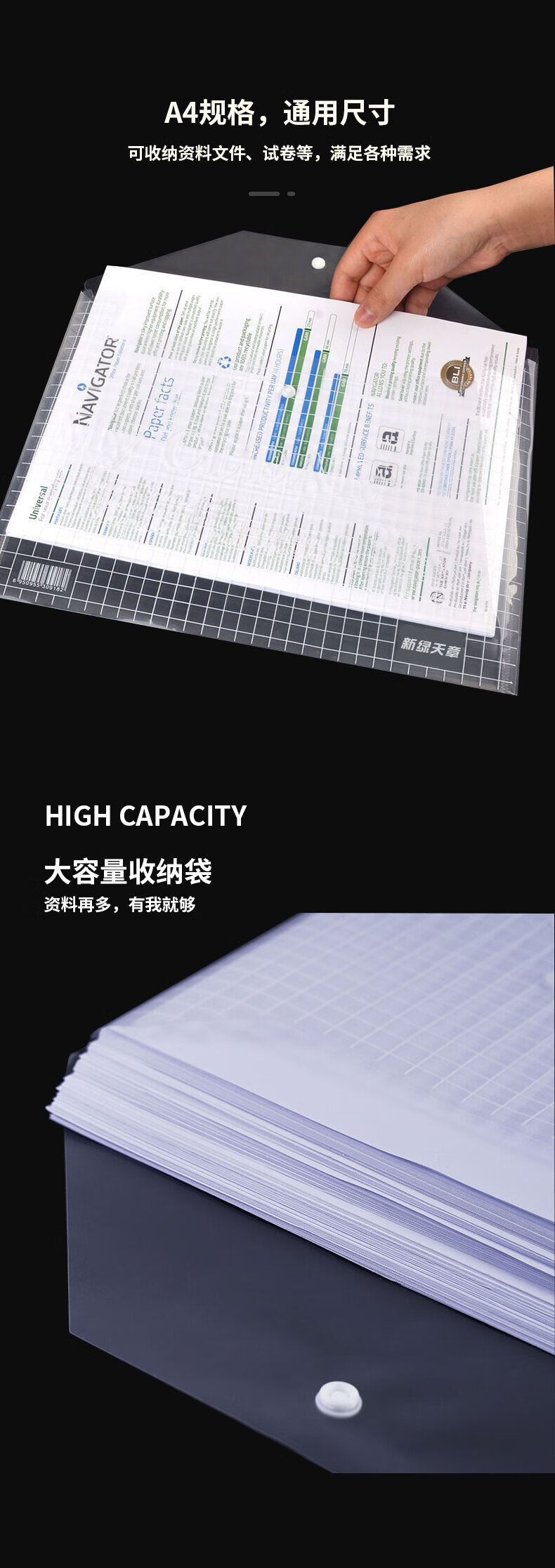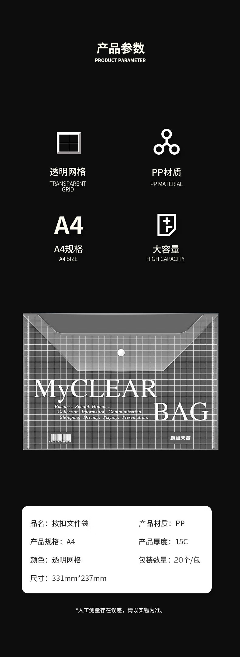 新绿天章 0314 网格 A4 足15C 20个/包 按扣文件袋 (单位:包 )