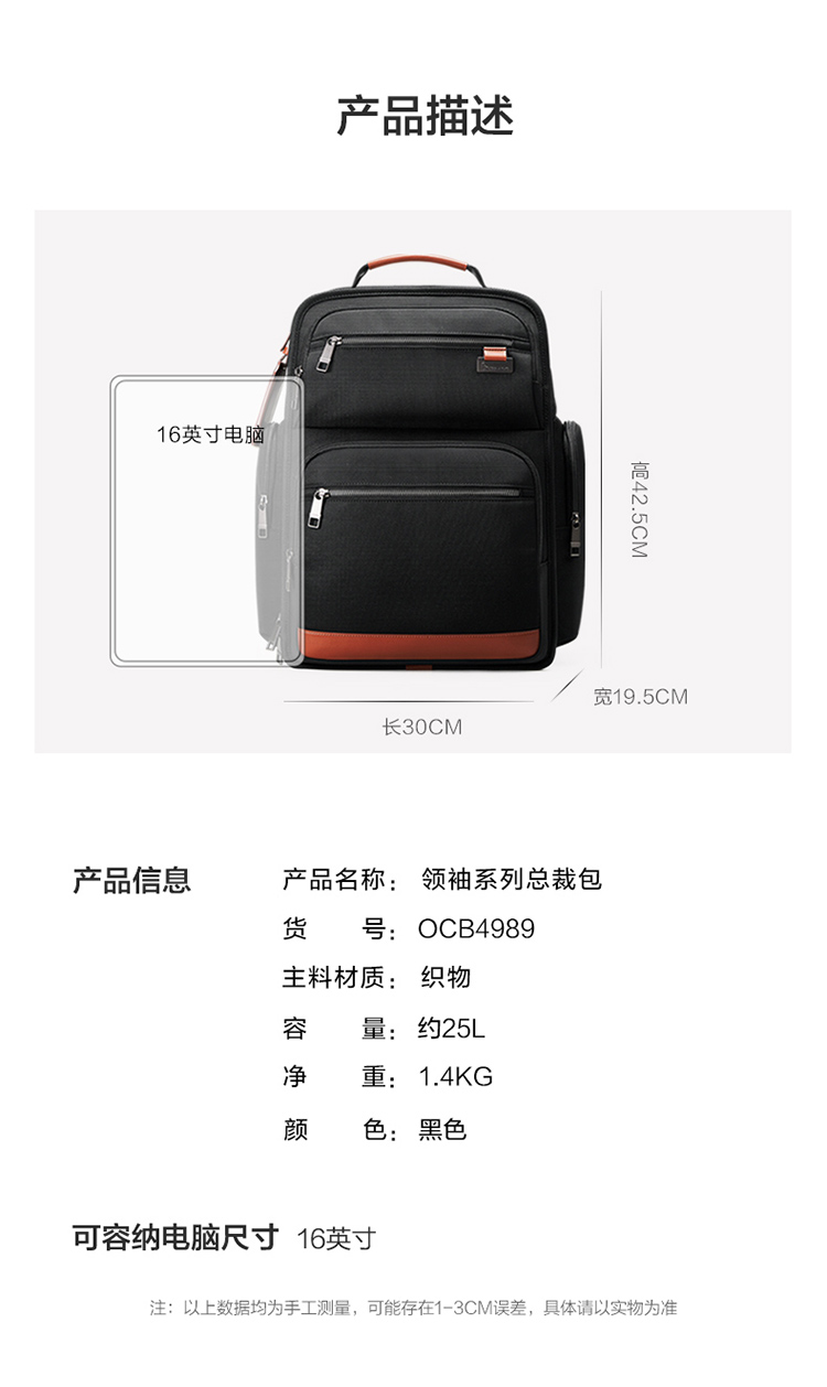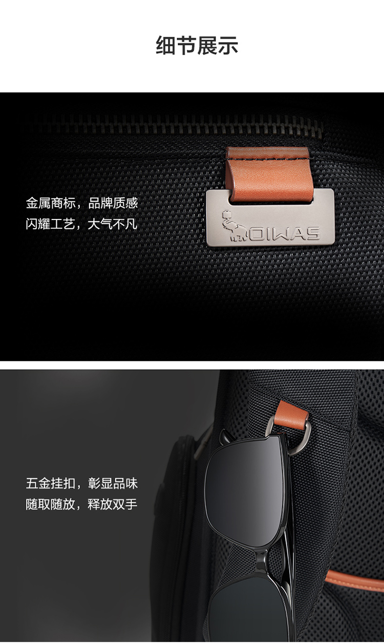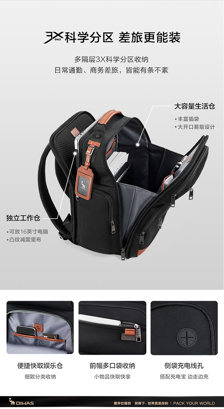 爱华仕(OIWAS) OCB4989 电脑包25L 弹道尼龙面料越走越轻 黑色(单位:个)
