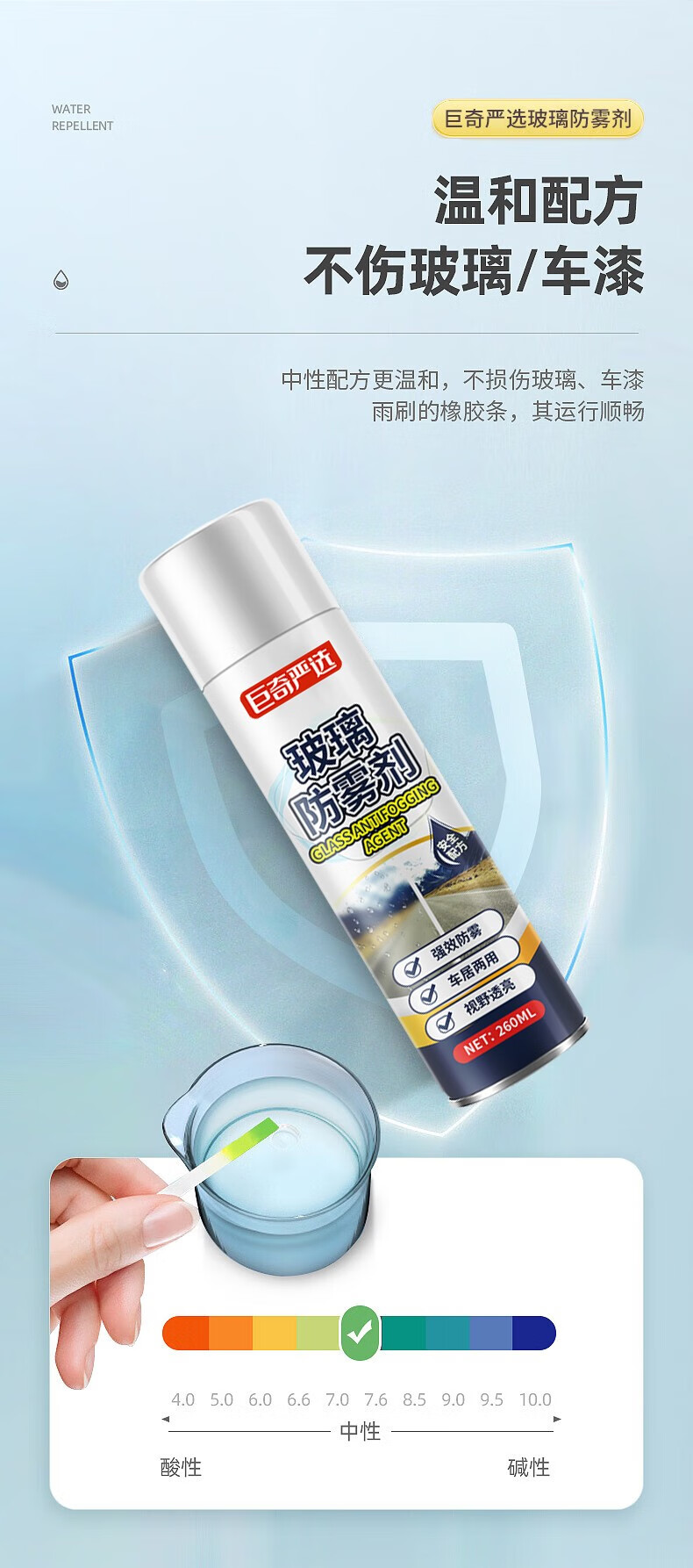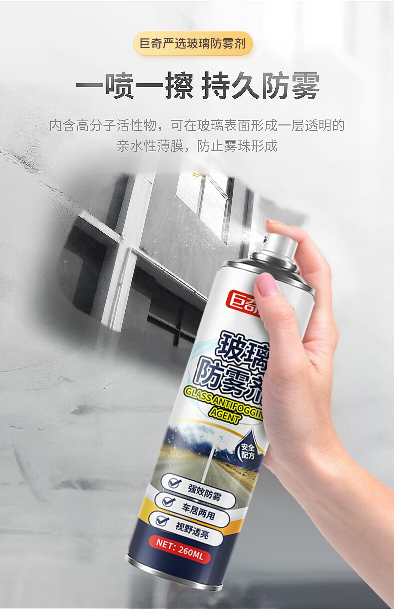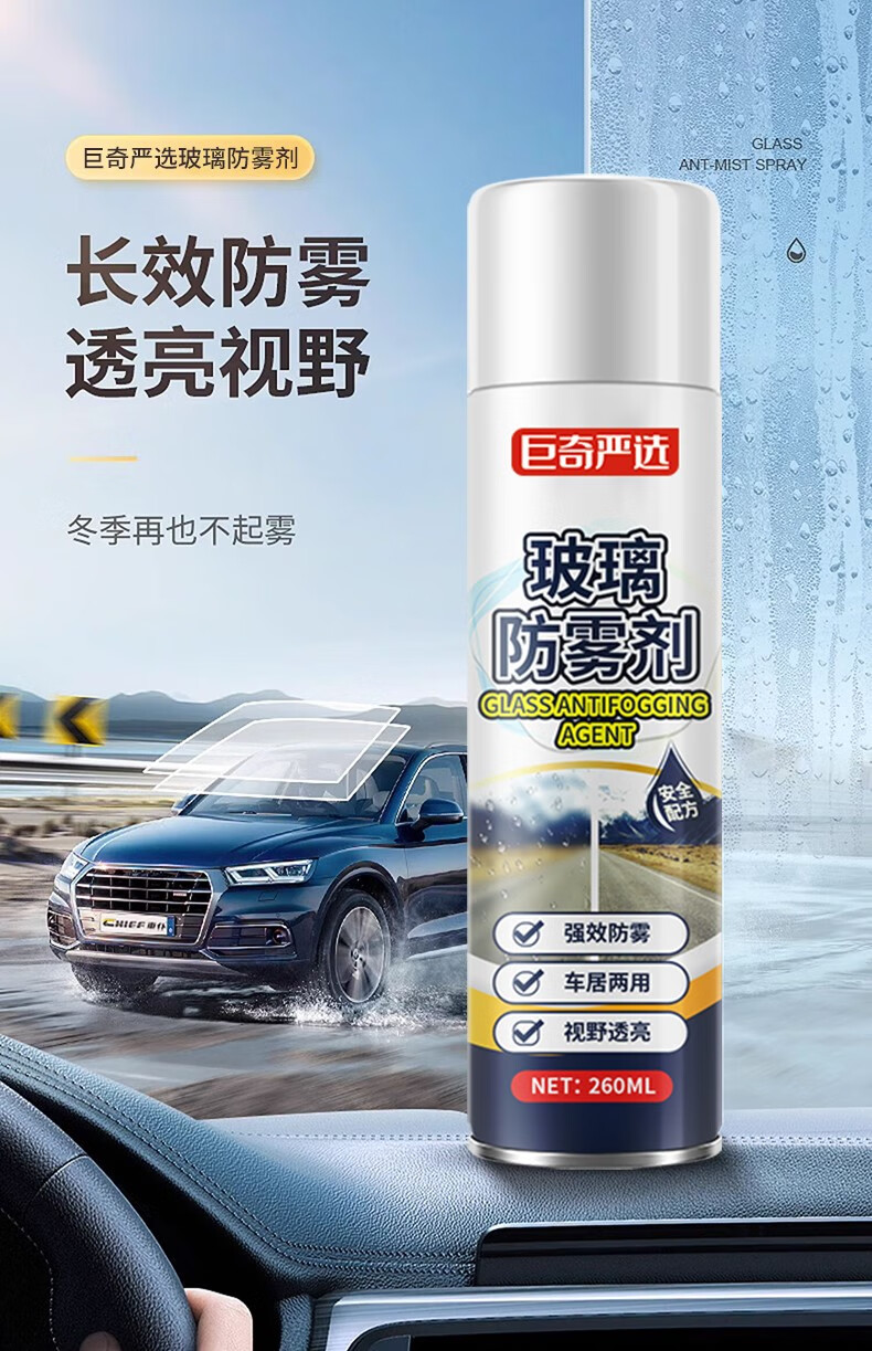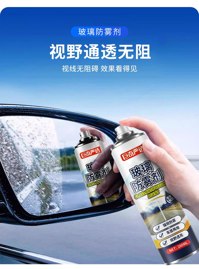 巨奇(JUQI) 汽车玻璃防雾剂 260ml*2瓶 除雾神器 蓝色(单位:瓶)