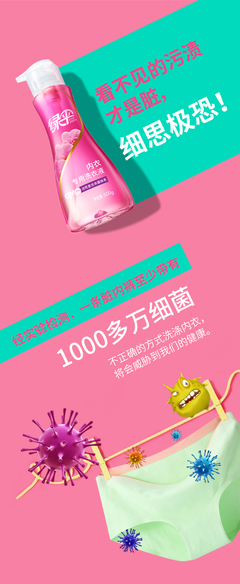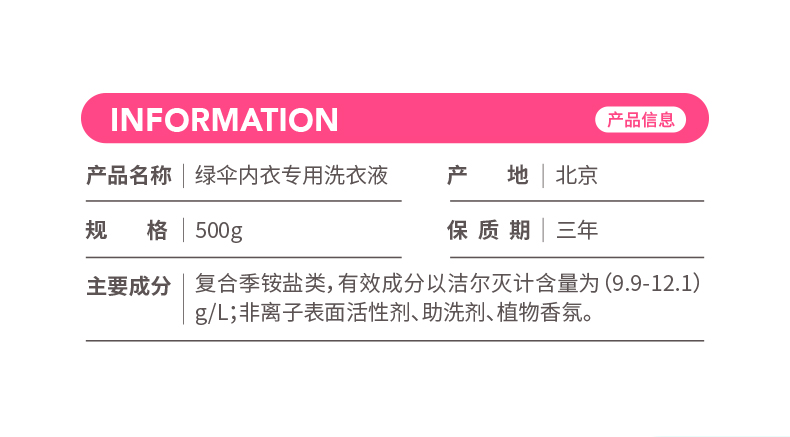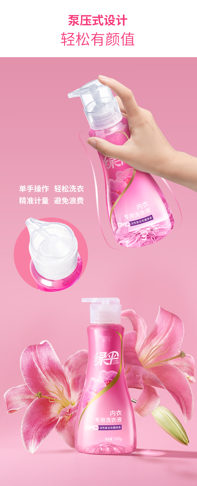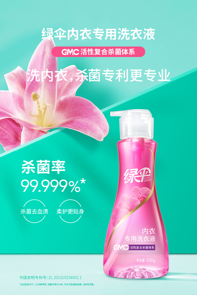 绿伞 GMC内衣洗衣液 500g 杀菌去渍柔护贴身 粉红(单位:瓶)