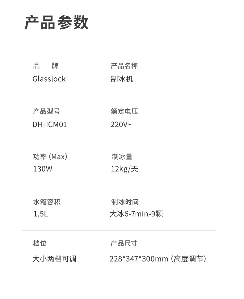 GLASSLOCK GE-IC01WH 1.5L 制冰机 白色(单位:台)