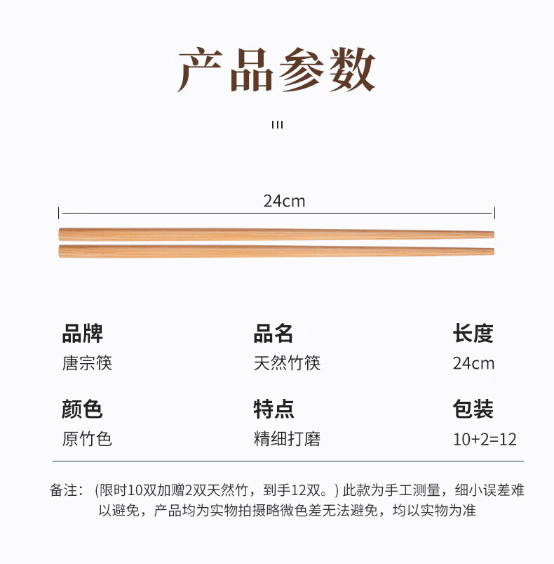 唐宗筷 A155 12双装 天然碳化竹筷子 黄色(单位:组)