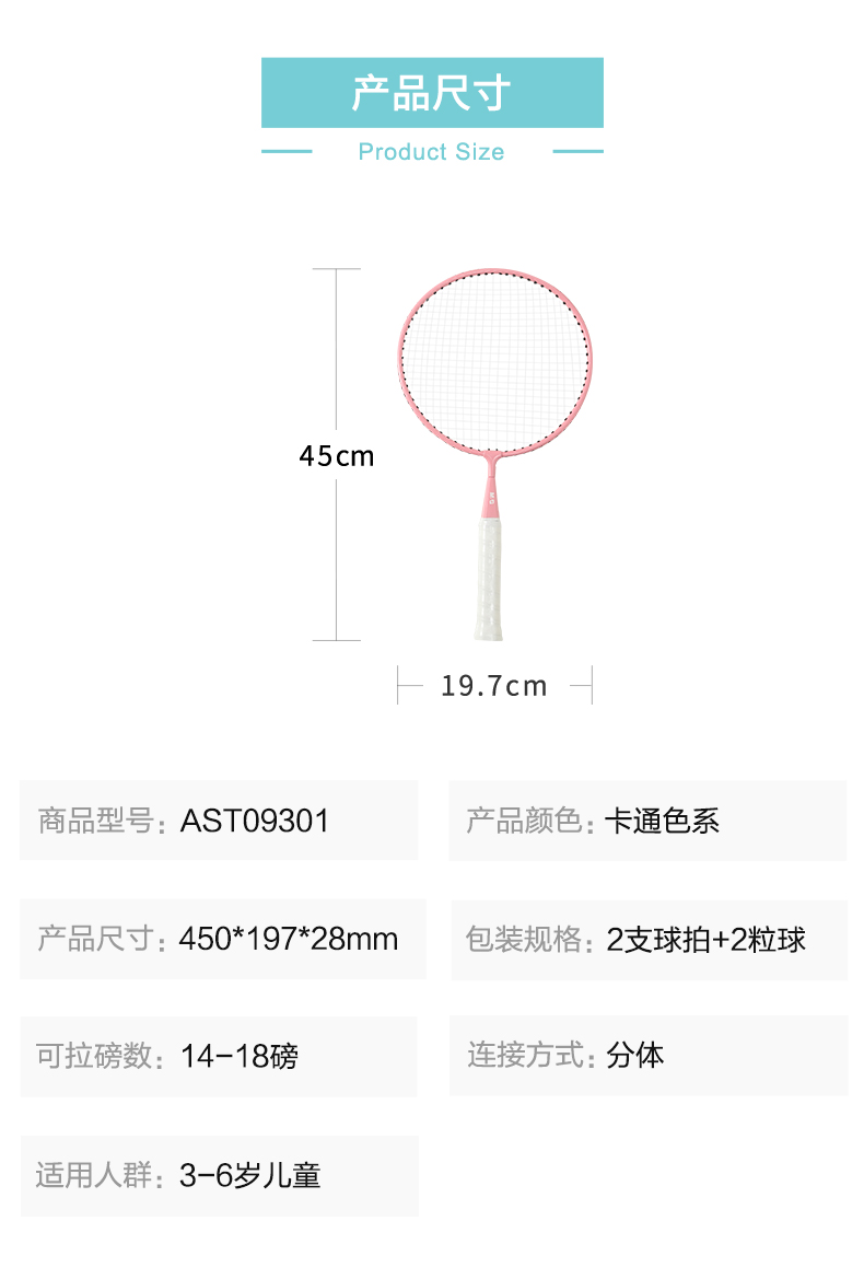 晨光(M&G) AST09301 450*197*28 儿童大圆拍羽毛球拍 混色(单位:套)