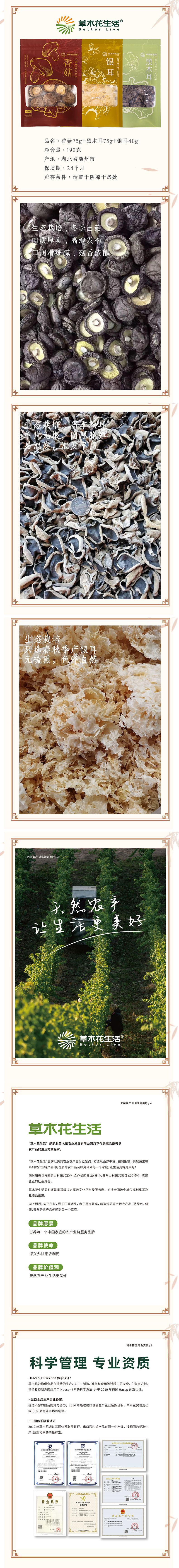 草木花生活 香菇75g+黑木耳75g+银耳40g 190g 组合装 混色(单位:组)