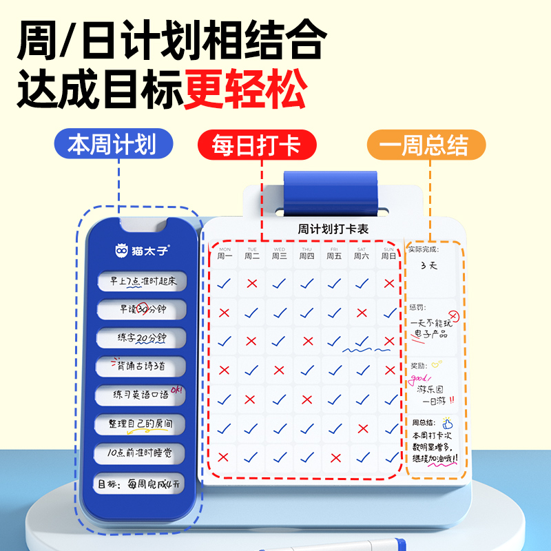 猫太子 10106M1496A 0.1kg 周计划自律打卡器 蓝色(单位:套)