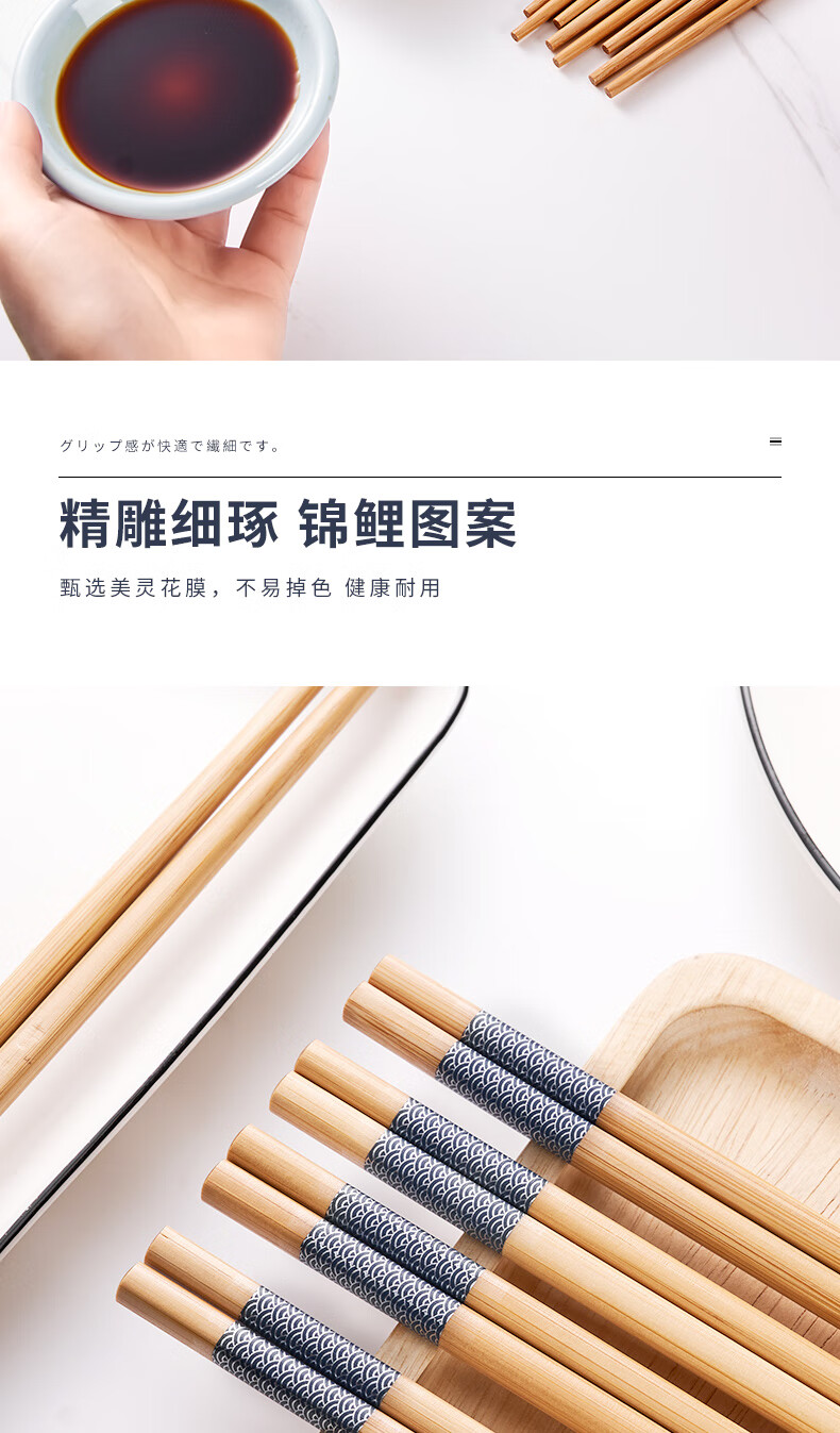 唐宗筷 TK10-0282 10双装 锦鲤印花筷竹筷子 宝石蓝(单位:盒)
