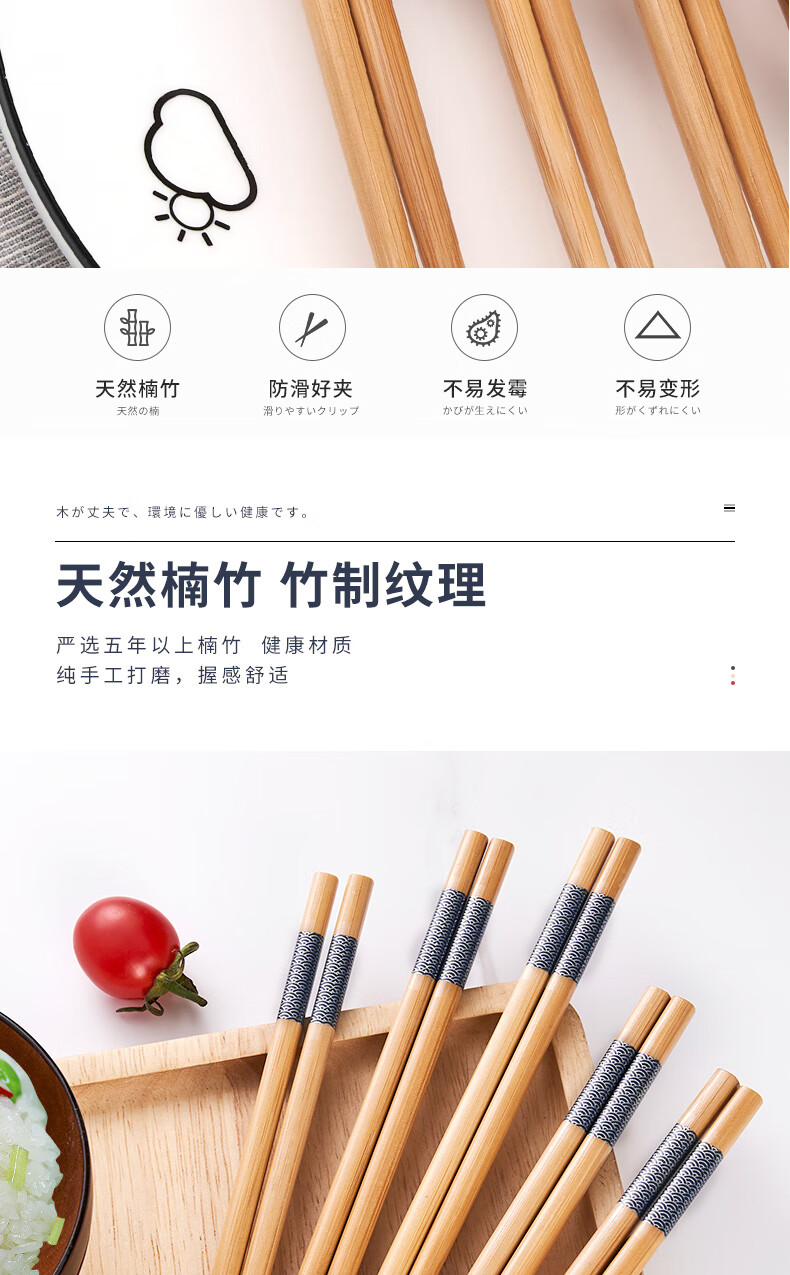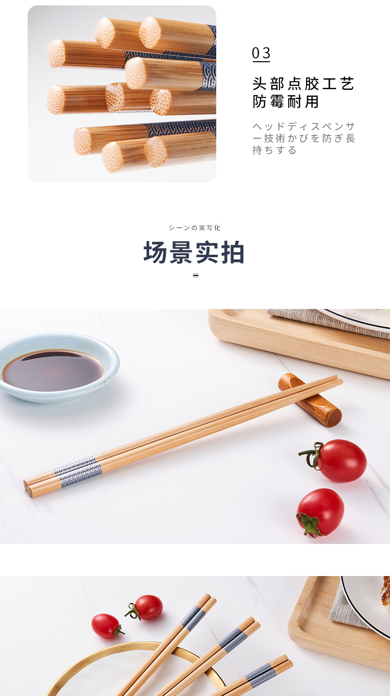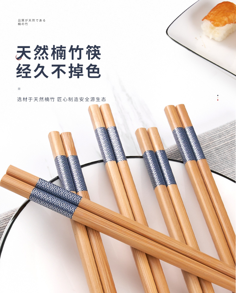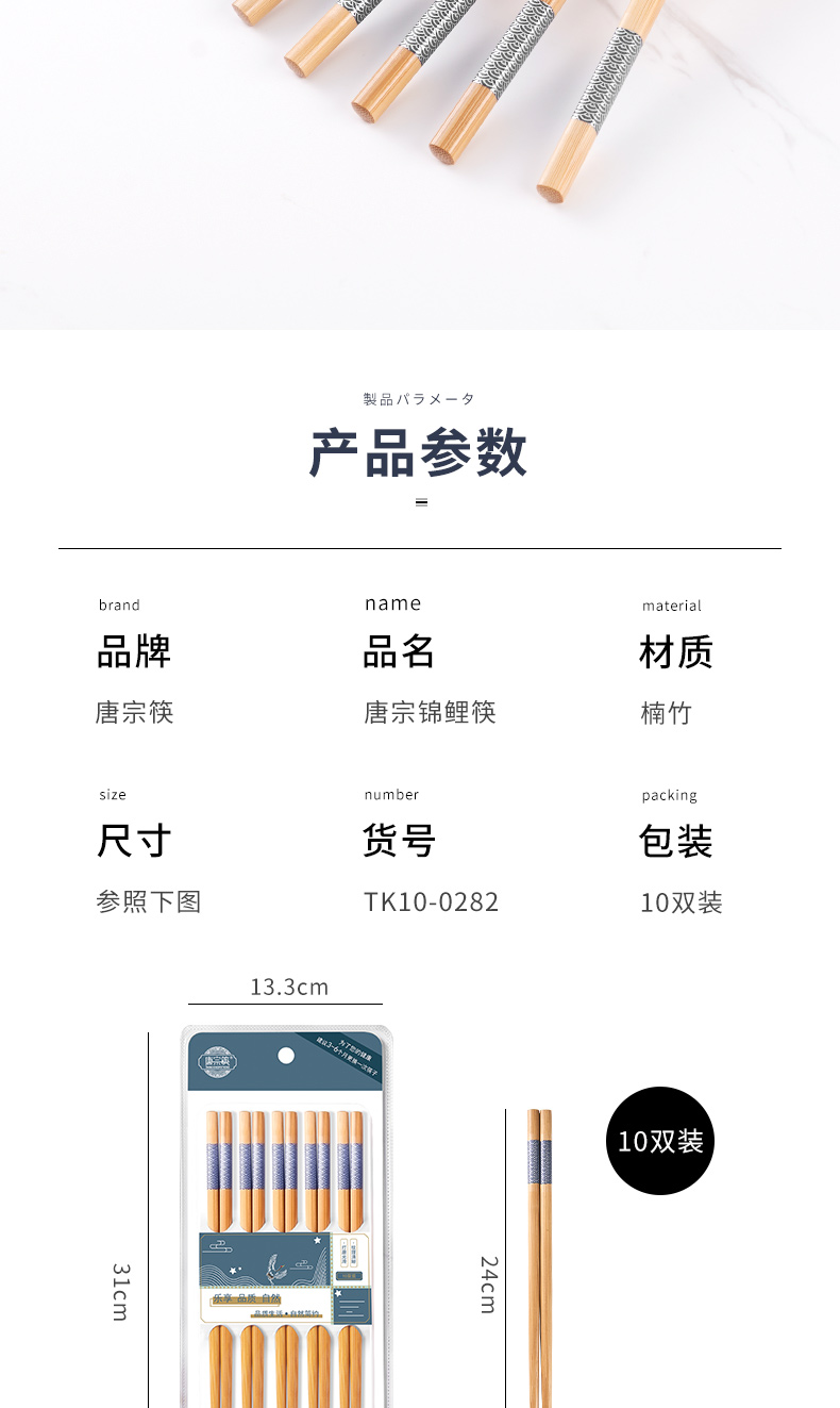 唐宗筷 TK10-0282 10双装/盒*3盒 锦鲤印花筷竹筷子 水蓝色(单位:组)