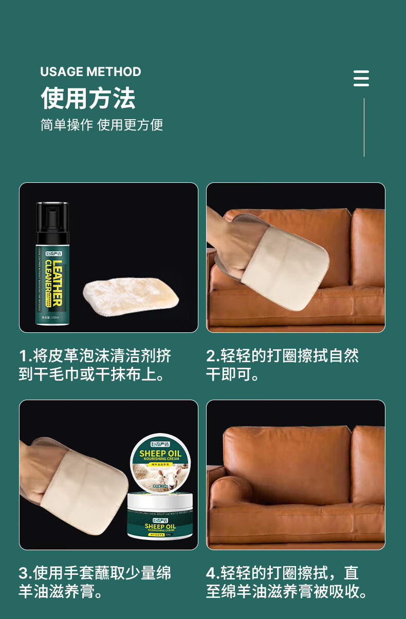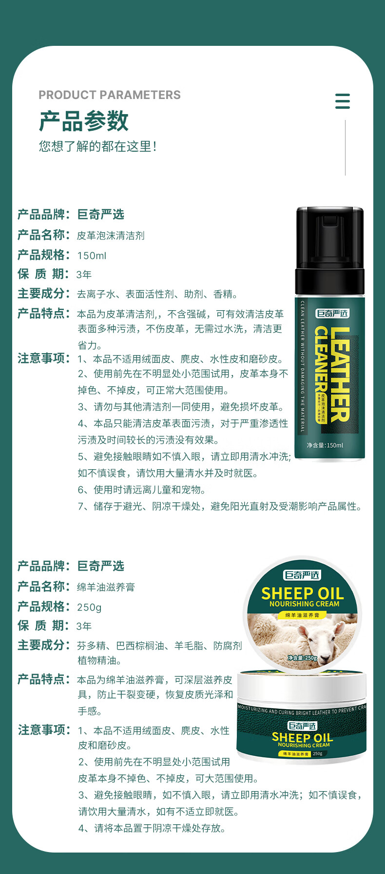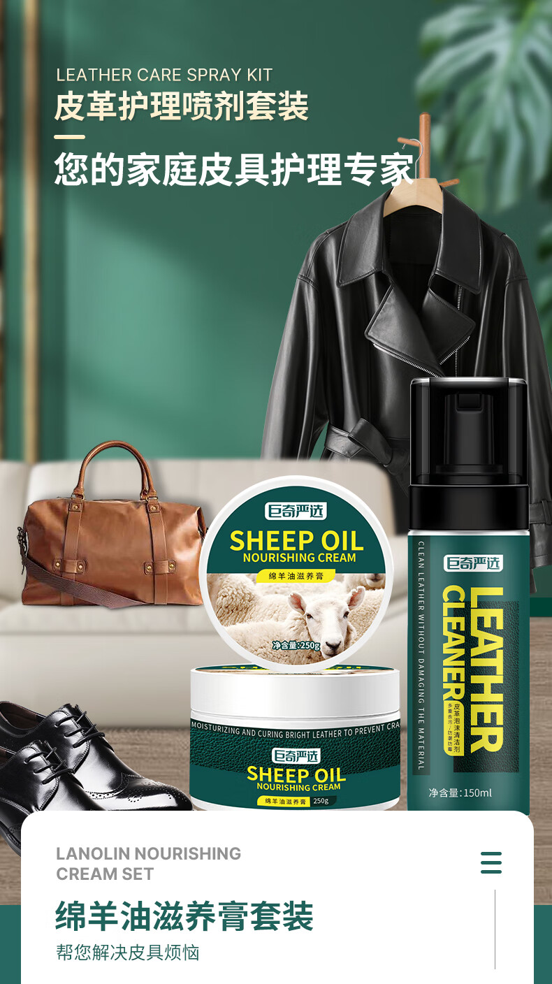 巨奇(JUQI) 绵羊油滋养膏+皮革清洁剂 250g+150ml 皮衣护理 军绿色(单位:套)
