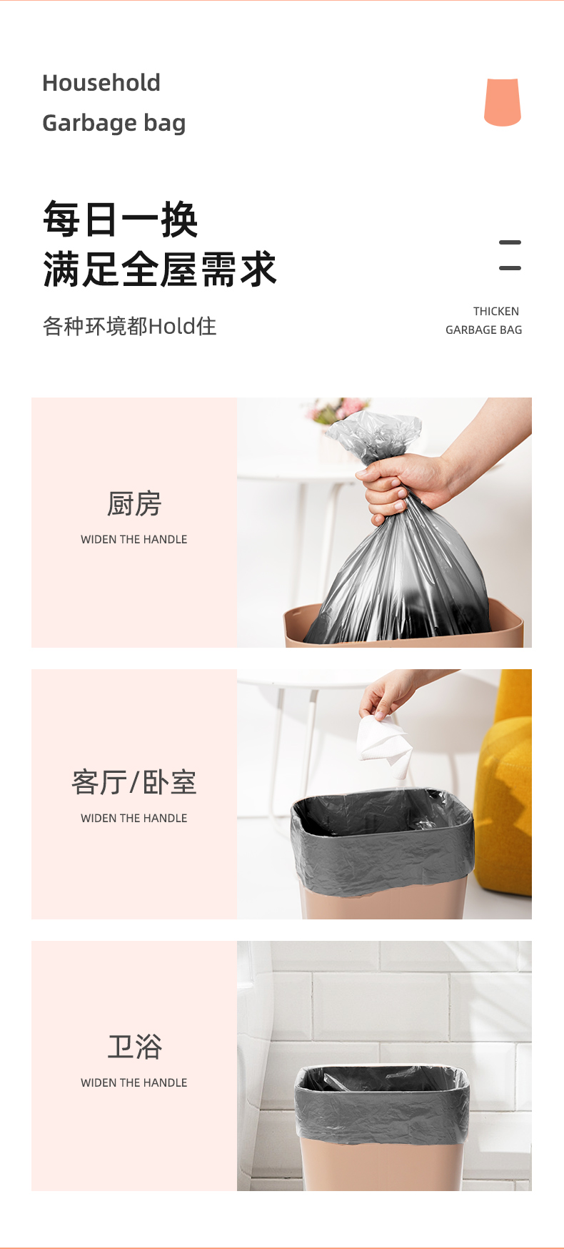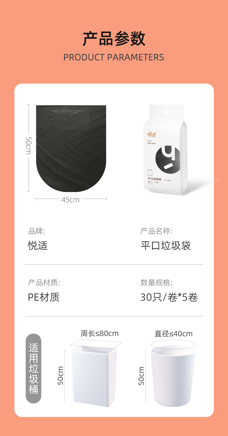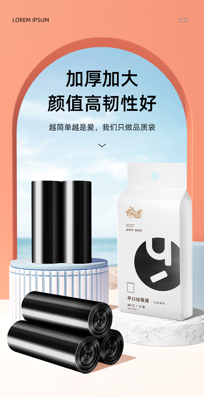 悦适/h'yeas QZPJB150 (30只×5卷)*1包 平口清洁垃圾袋 白色(单位:包)