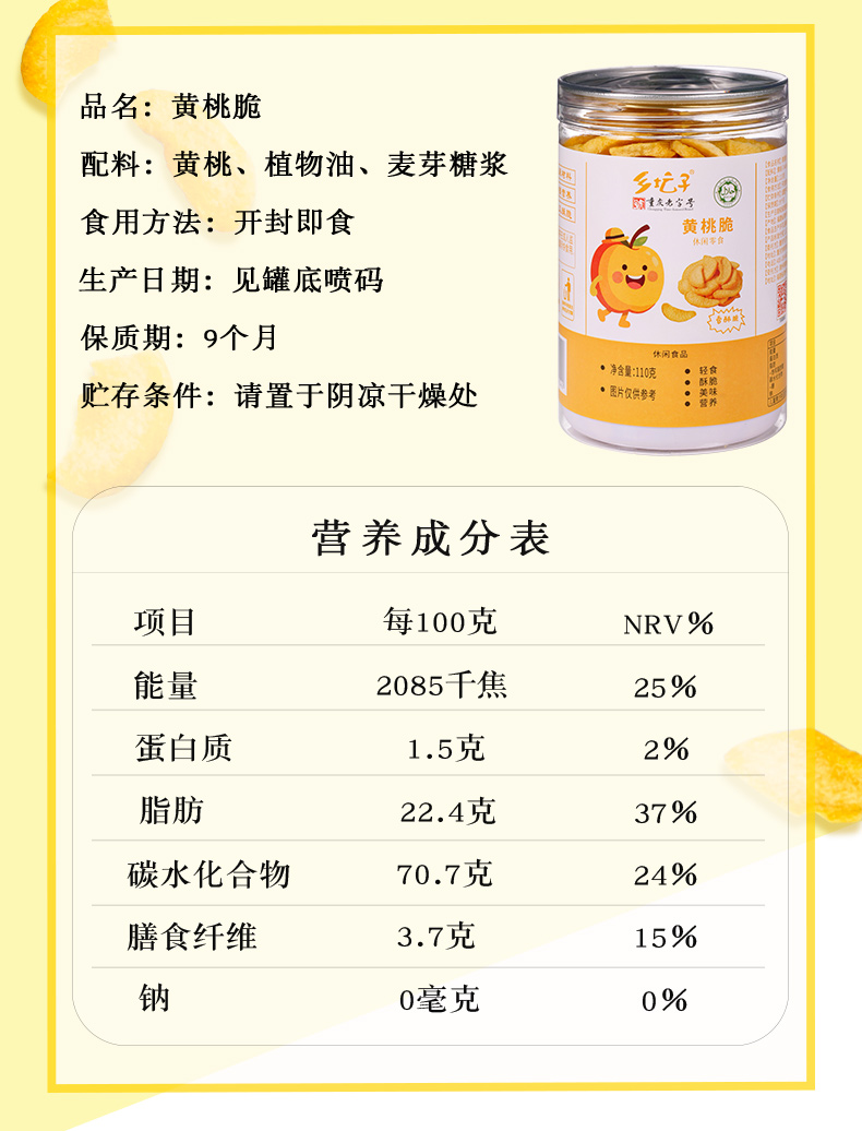 乡坛子 酥脆爽口桃味香浓 黄桃脆 110g*1 混色(单位:罐)