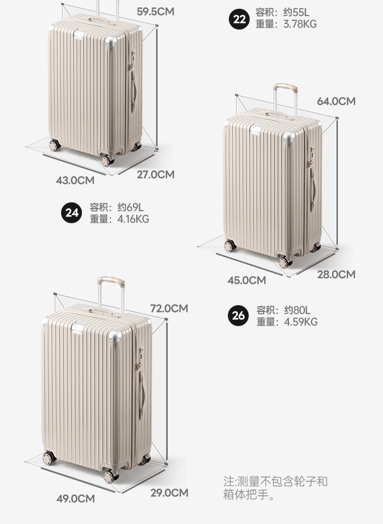 银座 A-8953L 行李箱 结实耐用旅行箱万向轮 26寸 岩石灰(单位:件)