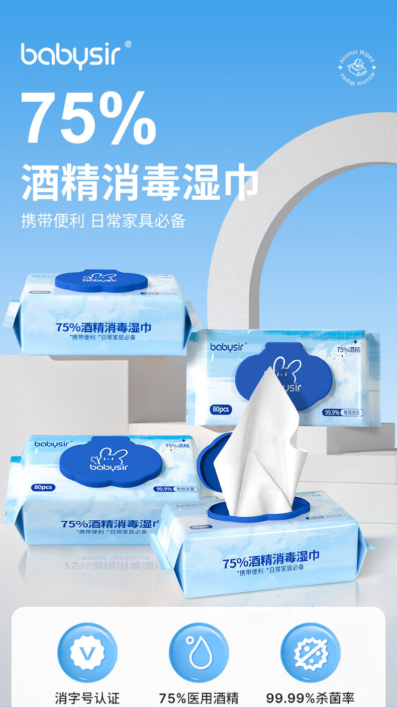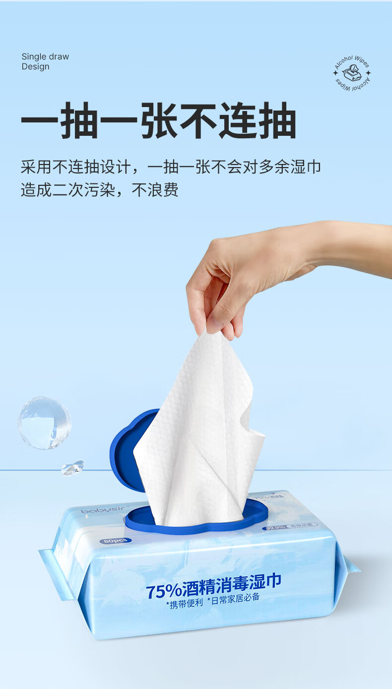 Babysir 酒精湿巾 80抽 消毒卫生 蓝色(单位:套)