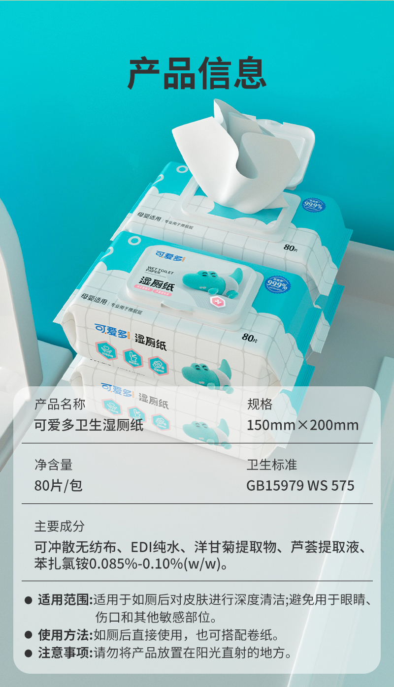 可爱多 3DS-KG8059 80抽/包*3包 湿厕纸 水蓝色(单位:组)