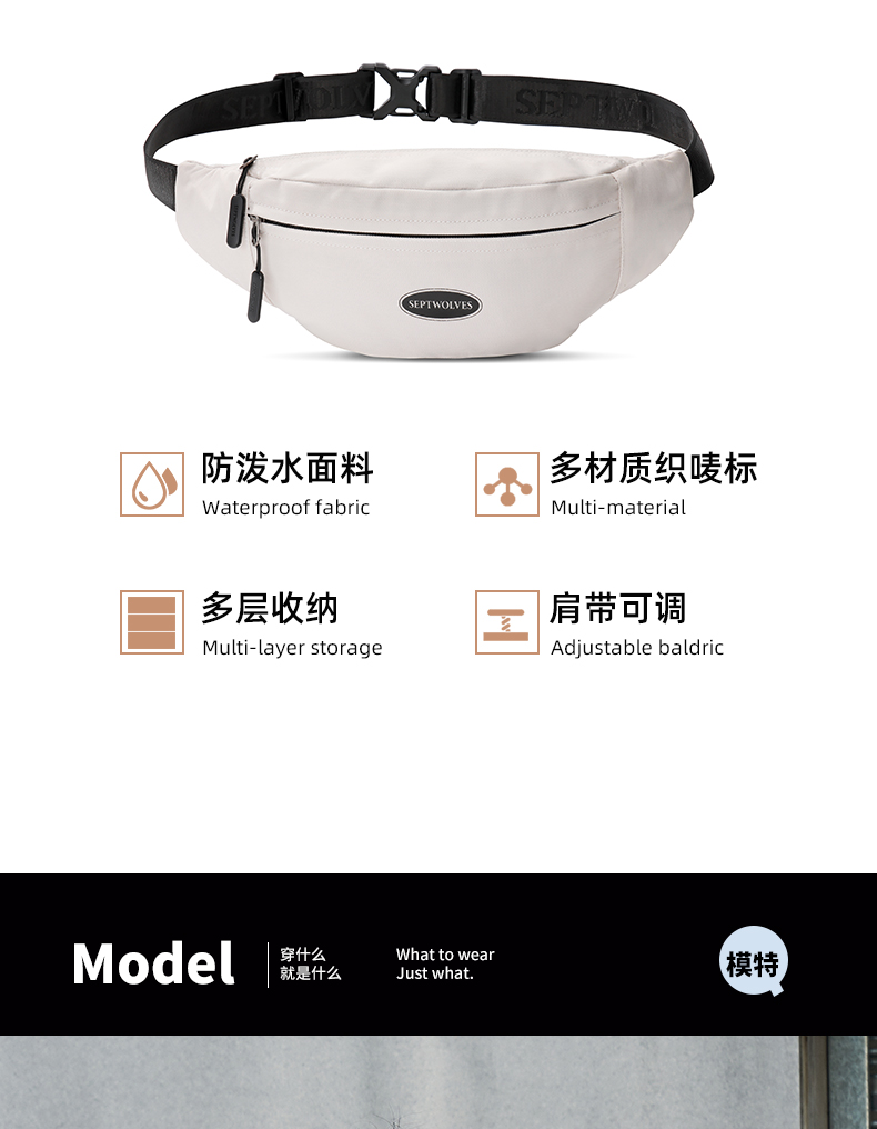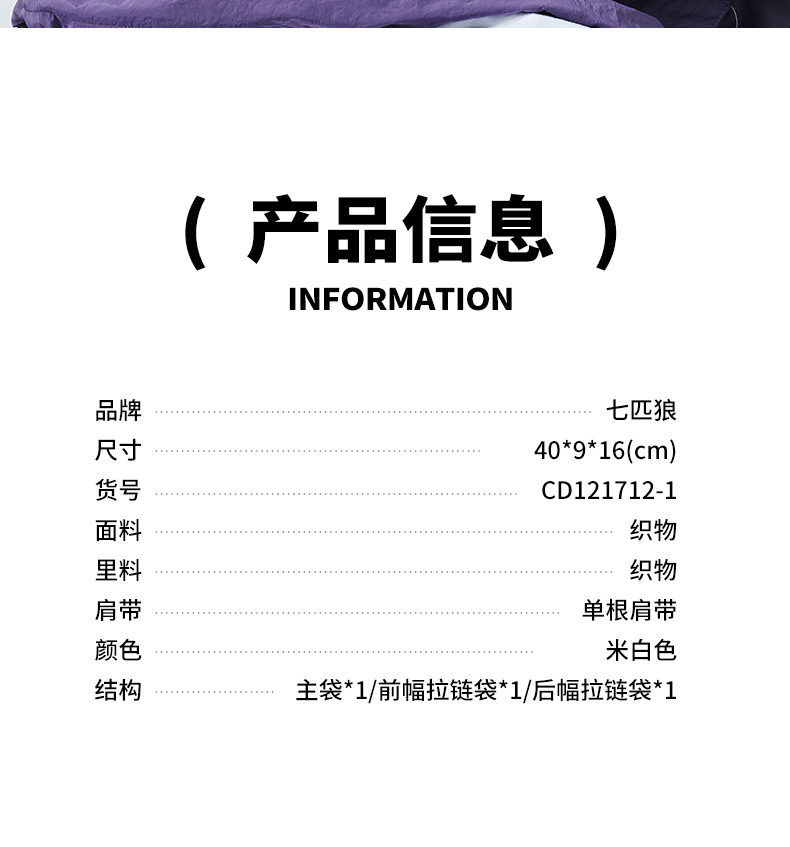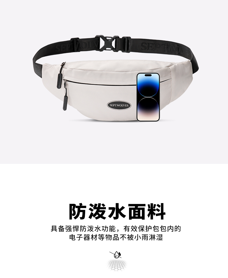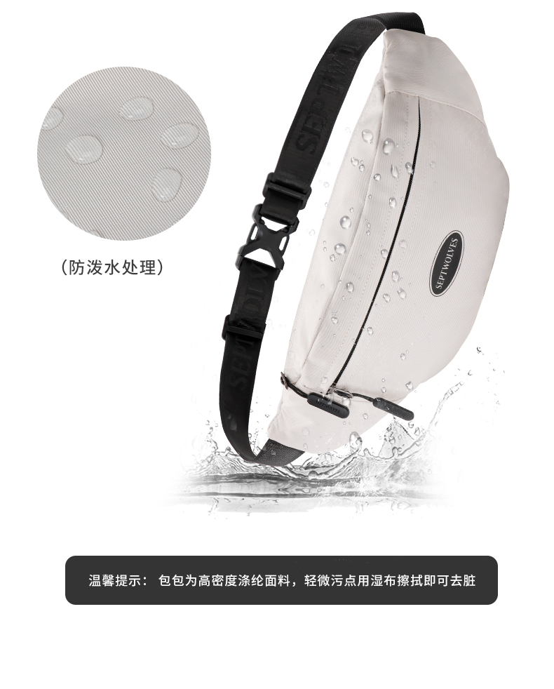 七匹狼(SEPTWOLVES) CD121712-1 400x90x160mm 斜挎包大容量胸包 米白色(单位:个)
