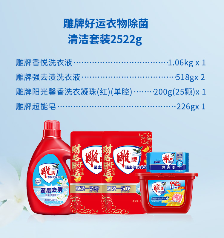 雕牌 好运衣物除菌清洁礼包 2522g 家庭清洁 红色(单位:套)