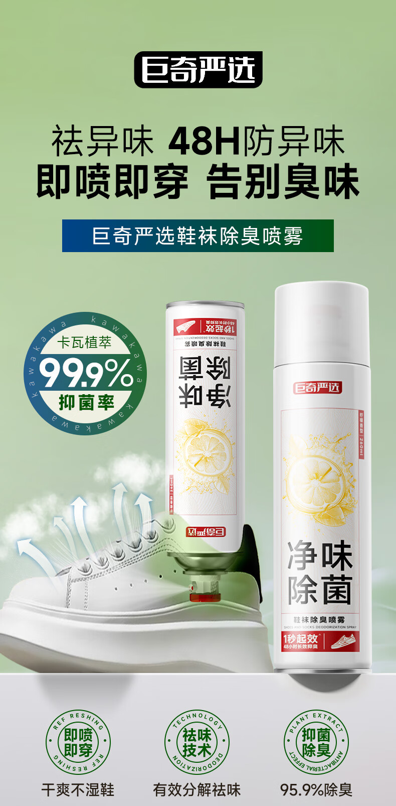 巨奇(JUQI) 鞋袜除臭喷雾 260ml*4瓶 消毒除脚臭 黄色(单位:套)
