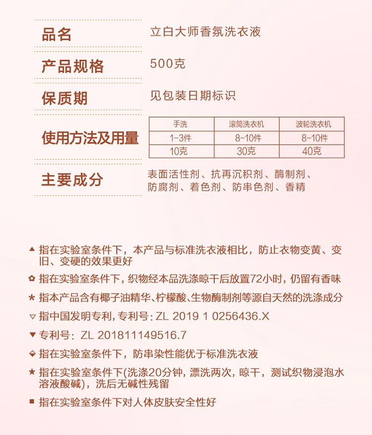 立白 大师香氛 500g*10袋 洗衣液 粉色(单位:套)