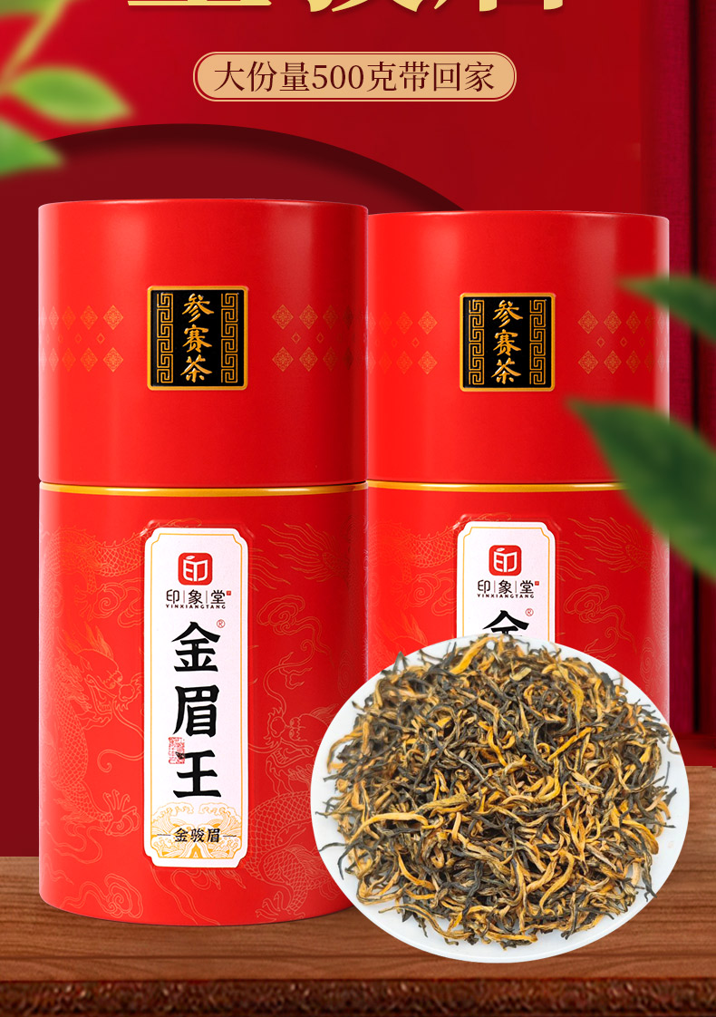 印象堂 特级参赛金骏眉核心产区茶叶礼盒装 红茶 250克/罐*2罐 红色(单位:组)