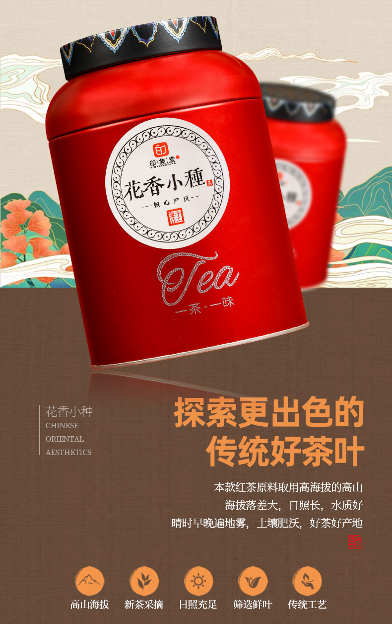 印象堂 新茶花香红茶福建茶叶礼盒装 正山小种 250克/罐*2罐 红色(单位:组)