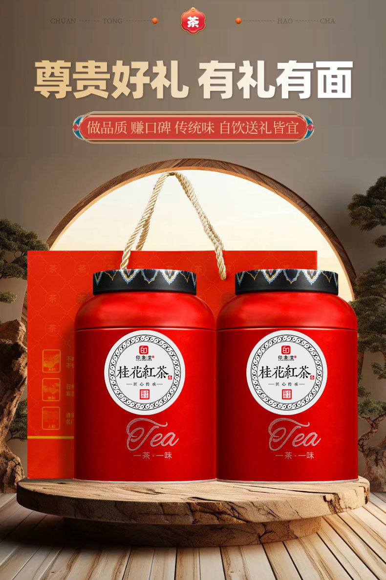 印象堂 桂花红茶特级茶叶 正山小种 250克/罐*2罐 红色(单位:组)