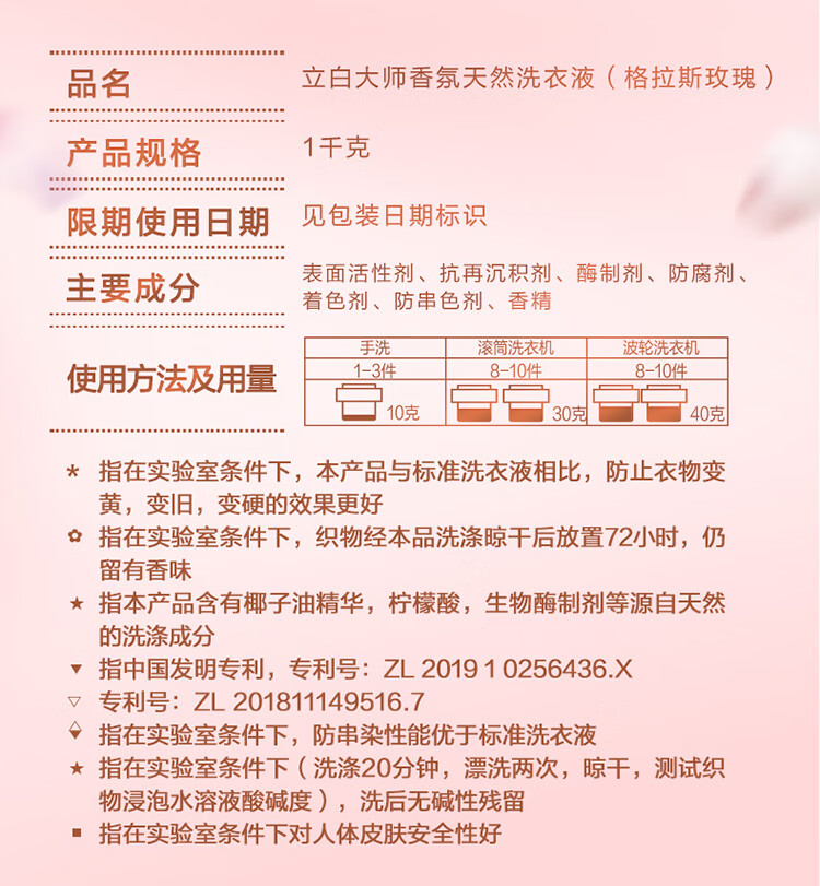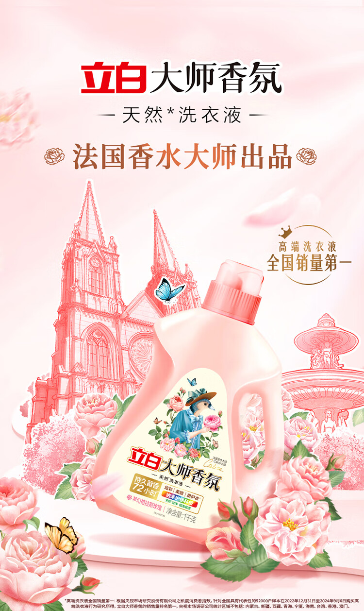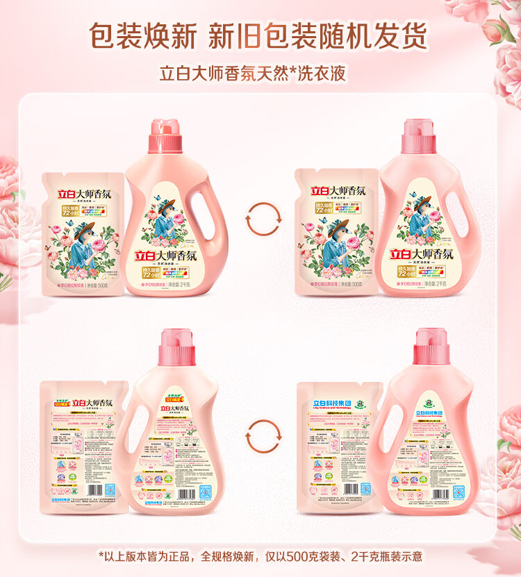 立白 大师香氛格拉斯玫瑰 1kg×1瓶+500g×2袋 洗衣液 茱萸粉(单位:组)