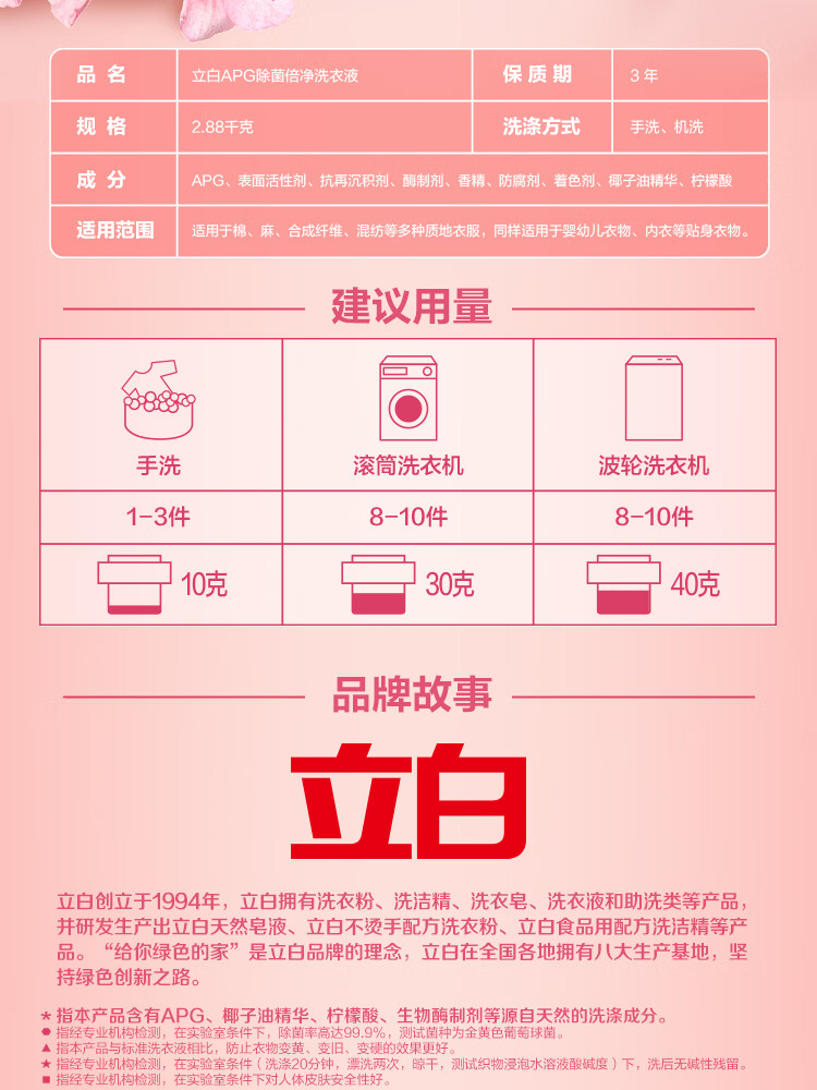立白 APG除菌倍净 2.88kg 洗衣液 茱萸粉(单位:瓶)