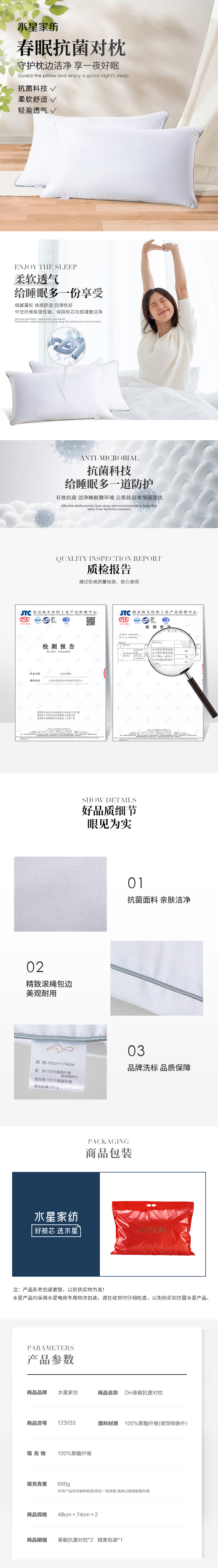 水星家纺74cm*48cm枕芯DH春眠抗菌对枕-123033/对 白色