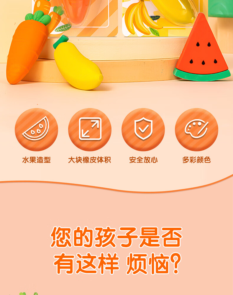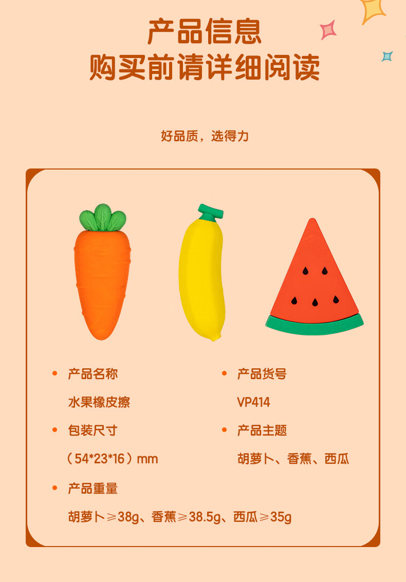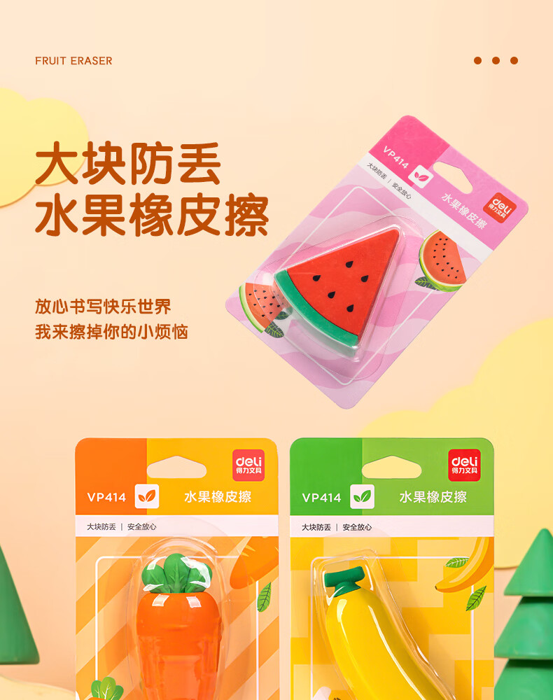 得力(deli) 水果橡皮 VP414胡萝卜 54*23*16mm 灰橙色(单位:块)
