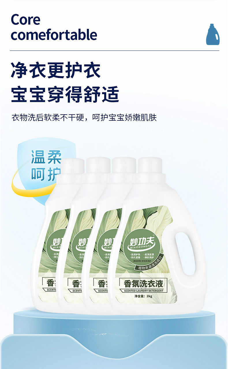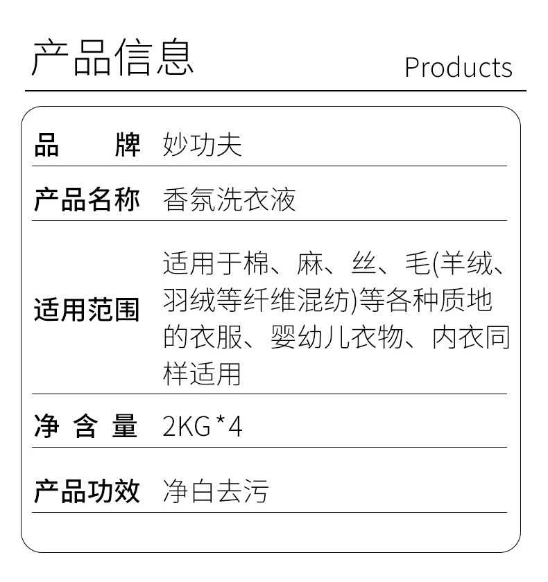 妙功夫 香氛洗衣液 2kg*4瓶 快速除污深层洁净 混色(单位:组)